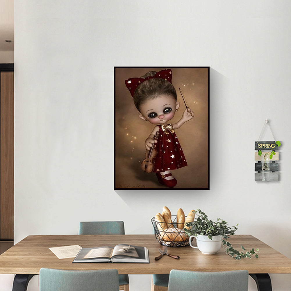 Big Eye Doll Playing The Violin - 11CT Stamped Cross Stitch 40*50CM
