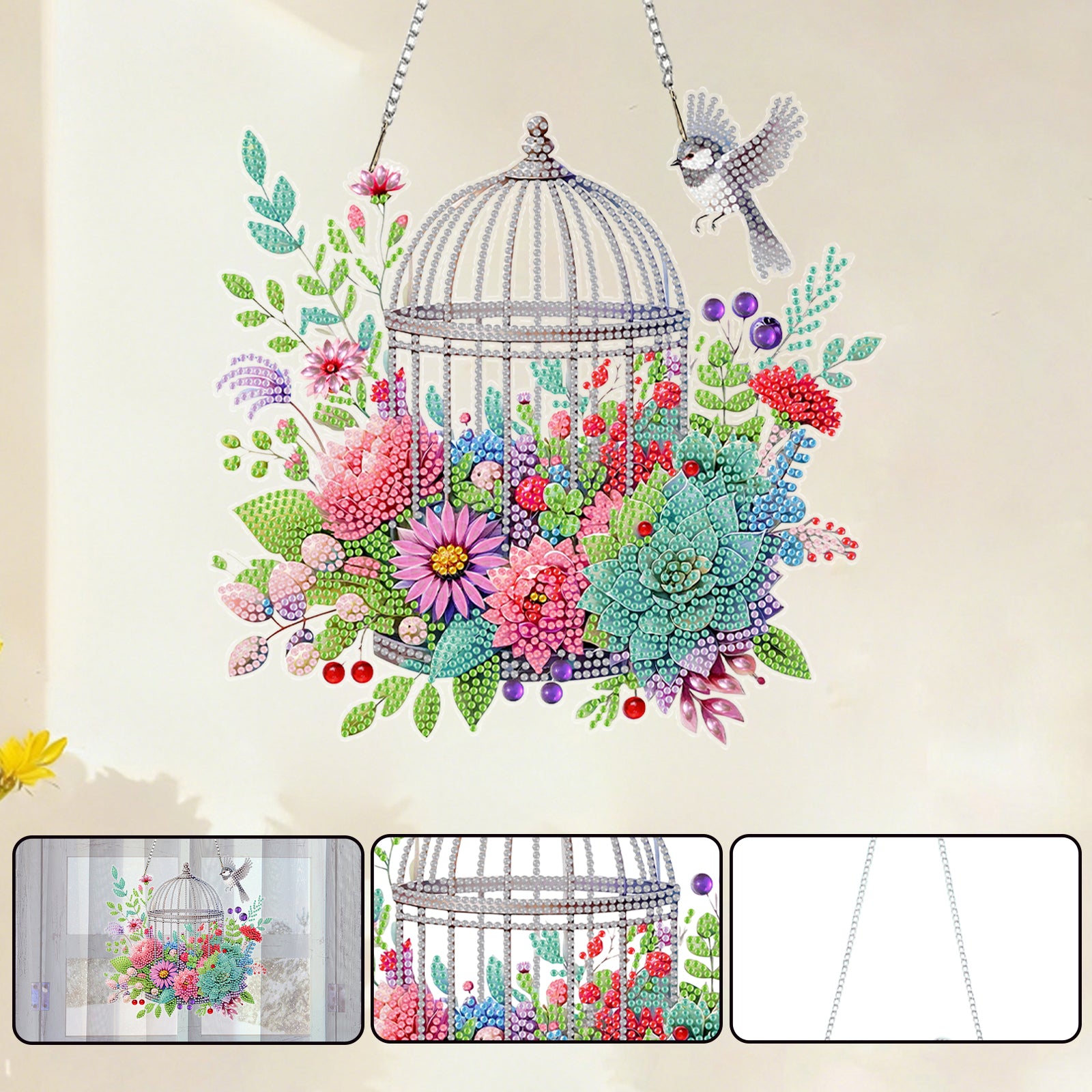 Birdcage Flowers 2D Flat DIY Acrylic Diamond Painting Kits Window Hanging