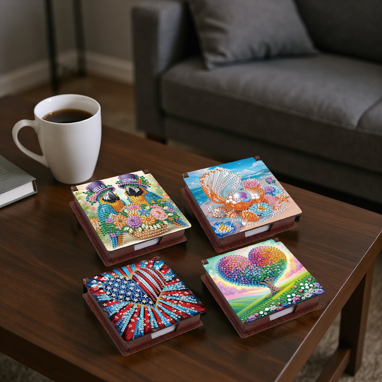 Birds and Hearts Wooden DIY 5D Diamond Painting Note Box 640 Notepads for Office