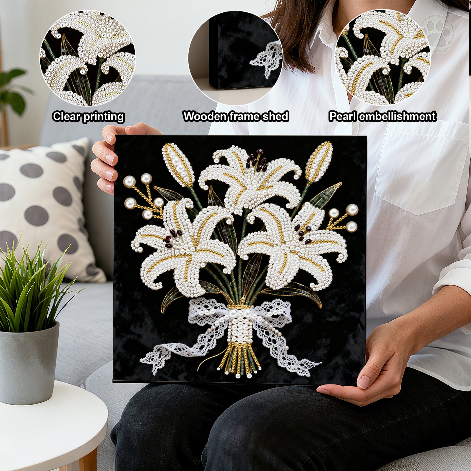 Blooming Flowers - DIY Pearl Gem Art Diamond Painting Kits With Framefor Home Decor -25x25cm