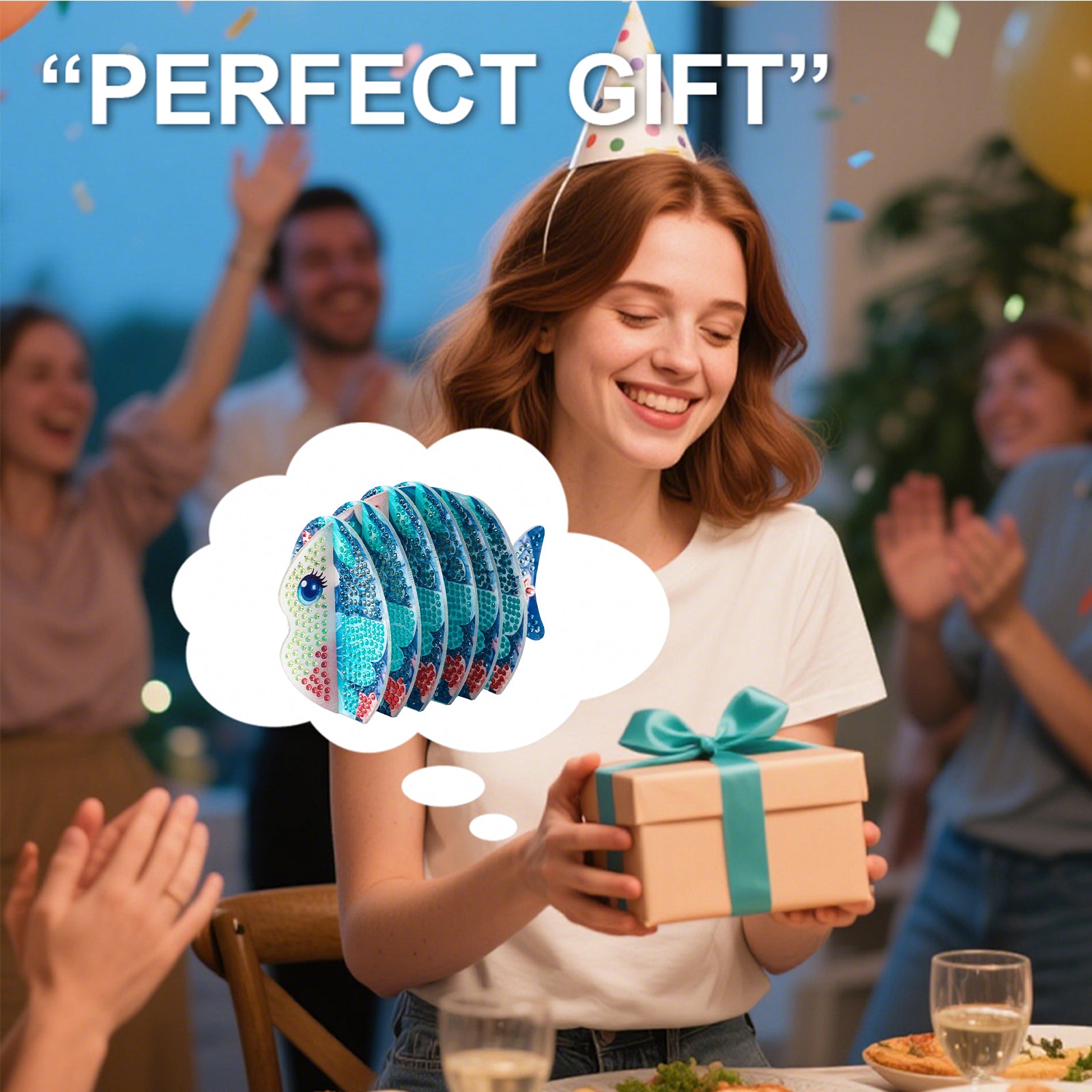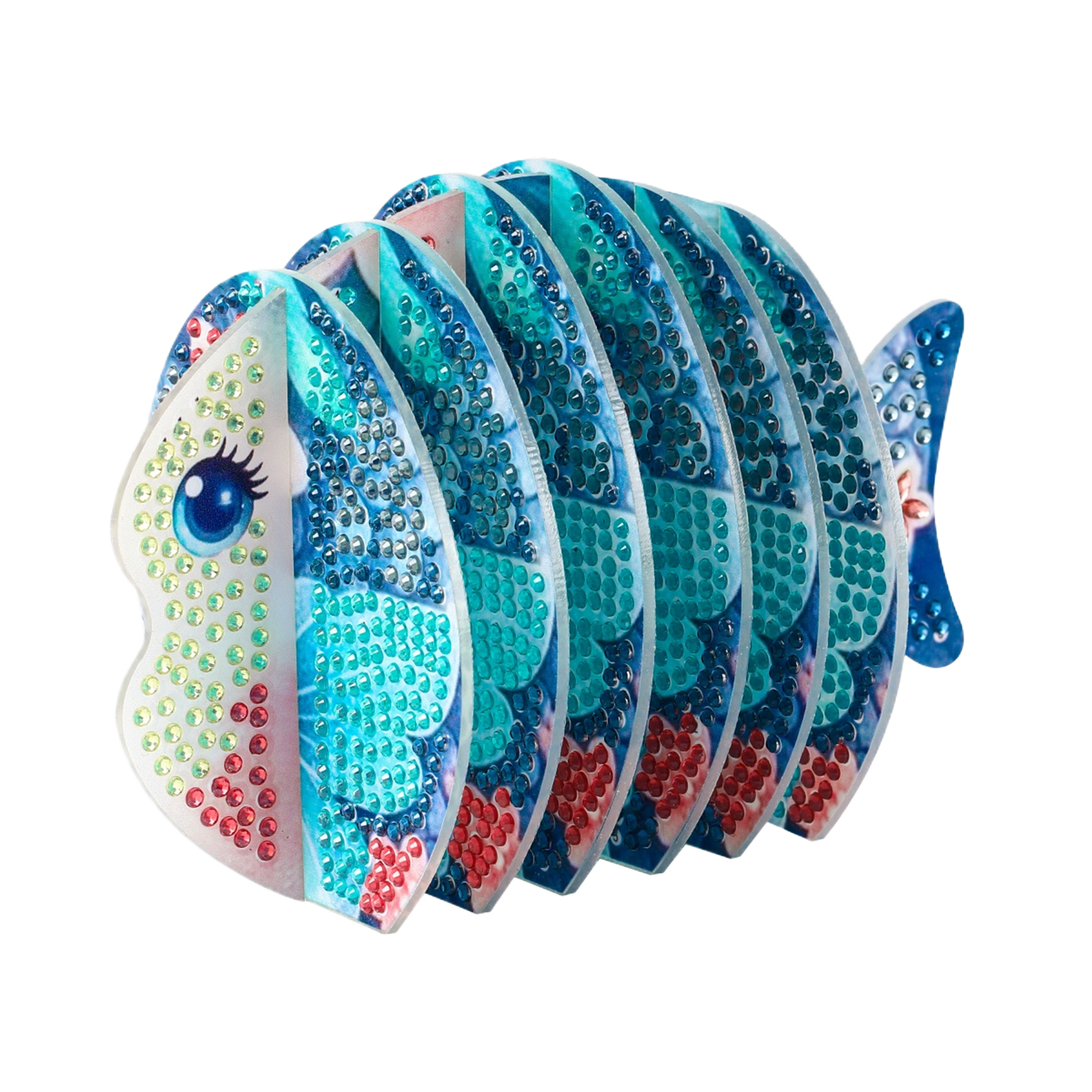 Blue Fish 5D DIY Animal Pattern Diamond Painting Coasters Kits with Holder Home