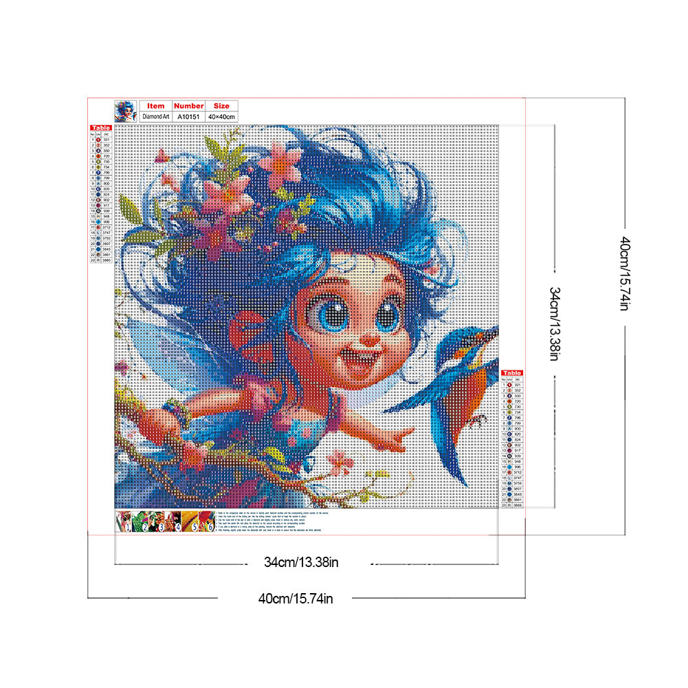 Blue-Haired Elf Girl And Hummingbird - Full Round Drill Diamond Painting 40*40CM