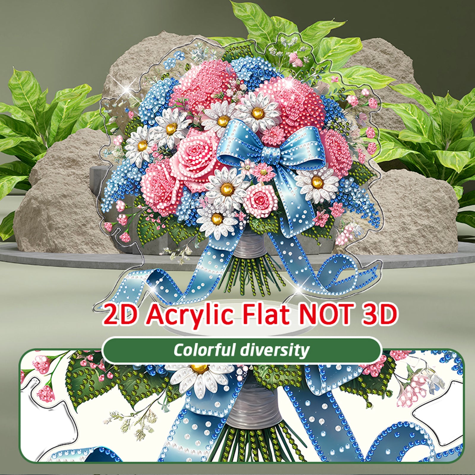 Blue Pink Flower DIY 2D Flat Acrylic Diamond Painting Home Tabletop Ornament Kit