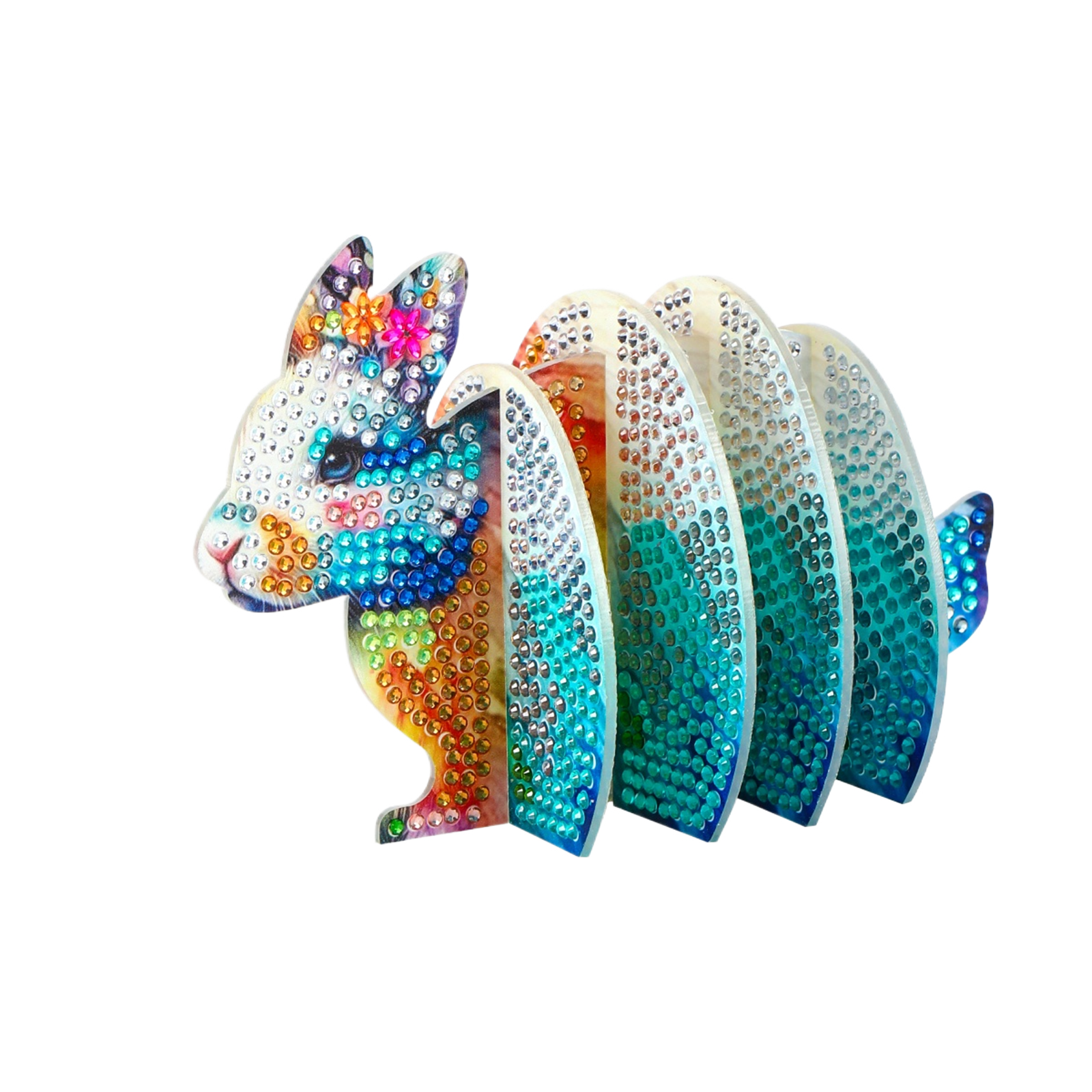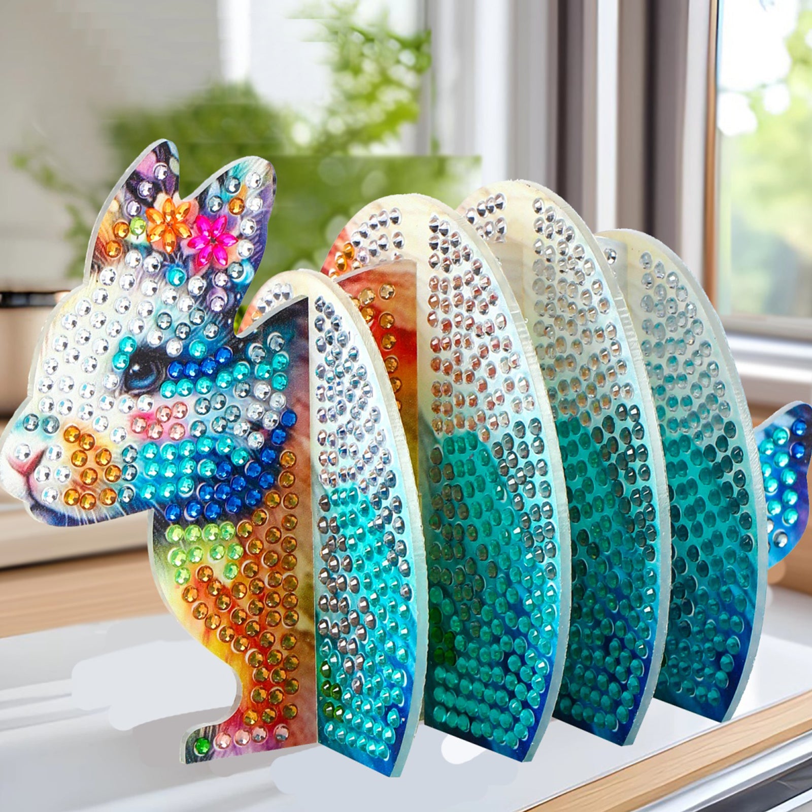 Blue Rabbit 5D DIY Animal Pattern Diamond Painting Coasters Kits with Holder