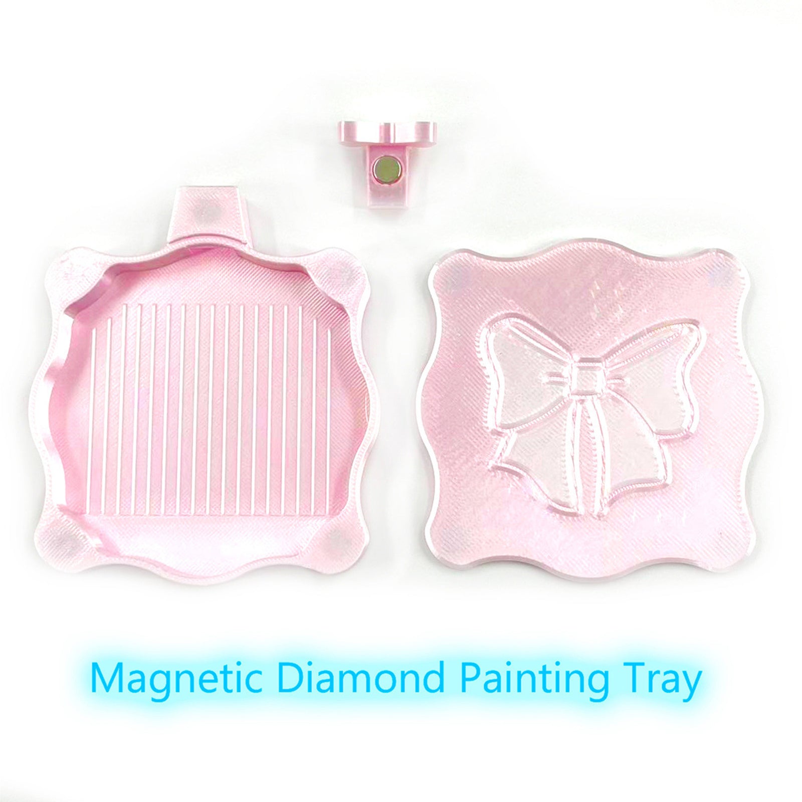 Bowknot DIY Diamond Art Painting Trays Kits with Lid for Adults Crafts (Pink)