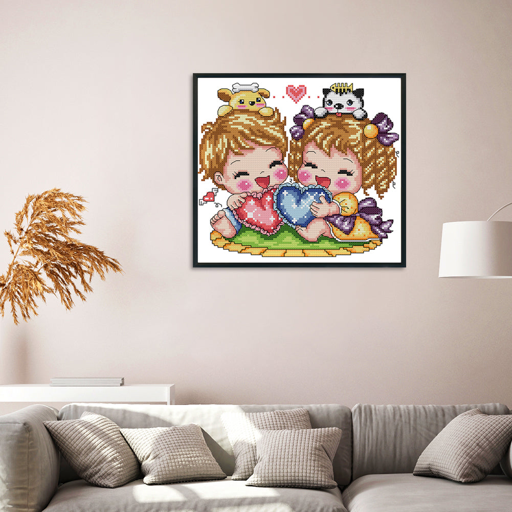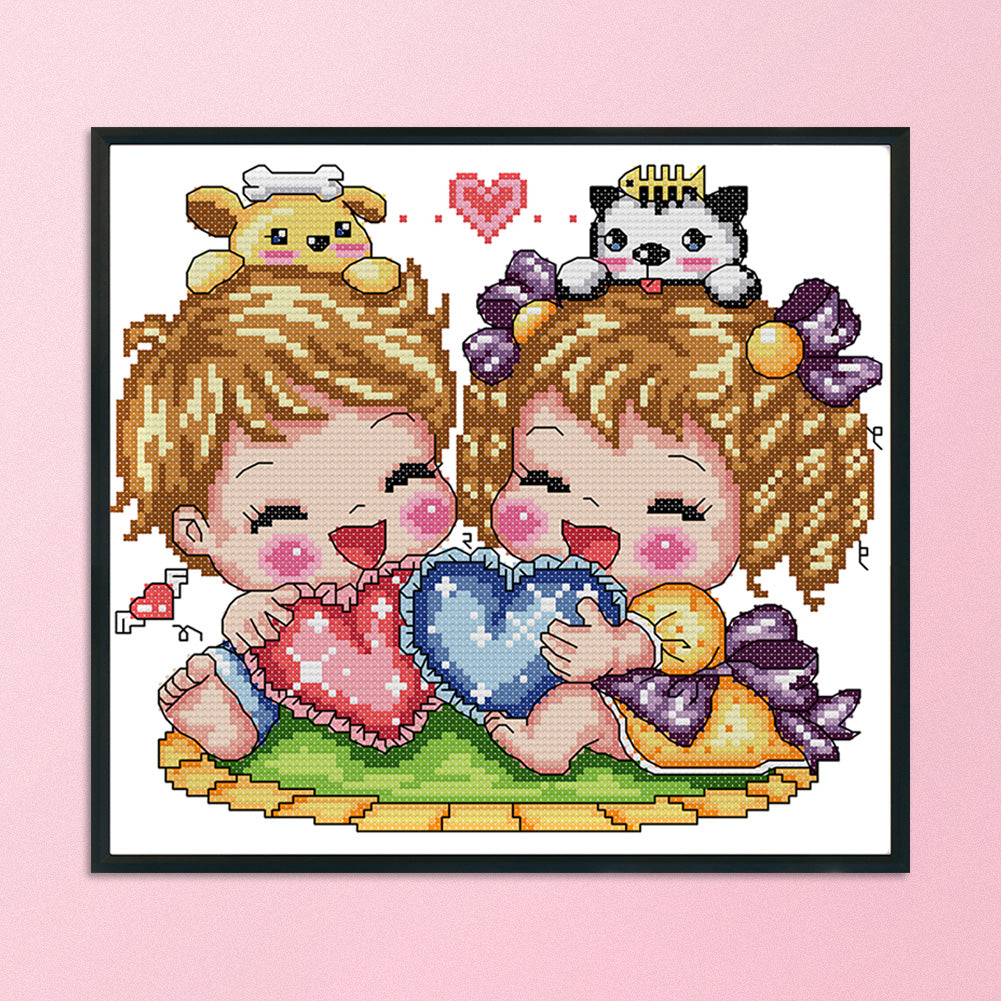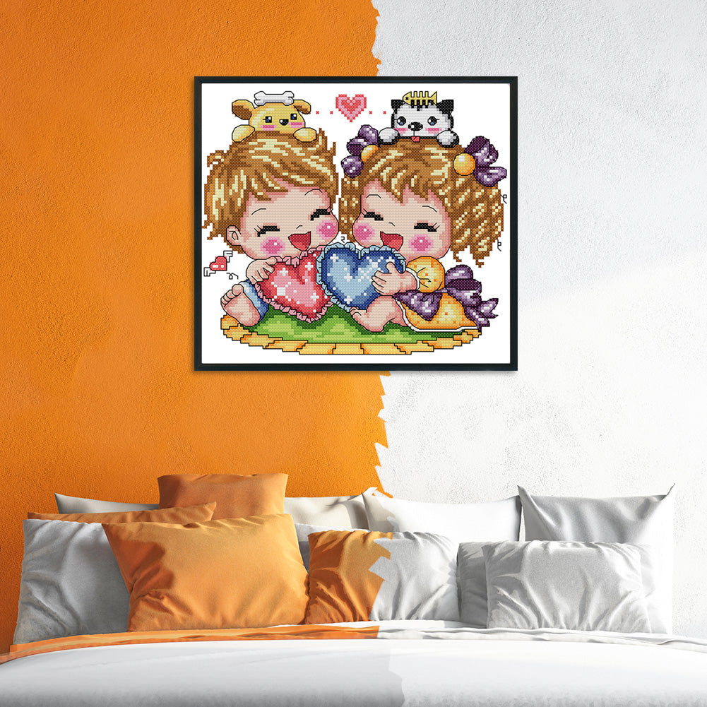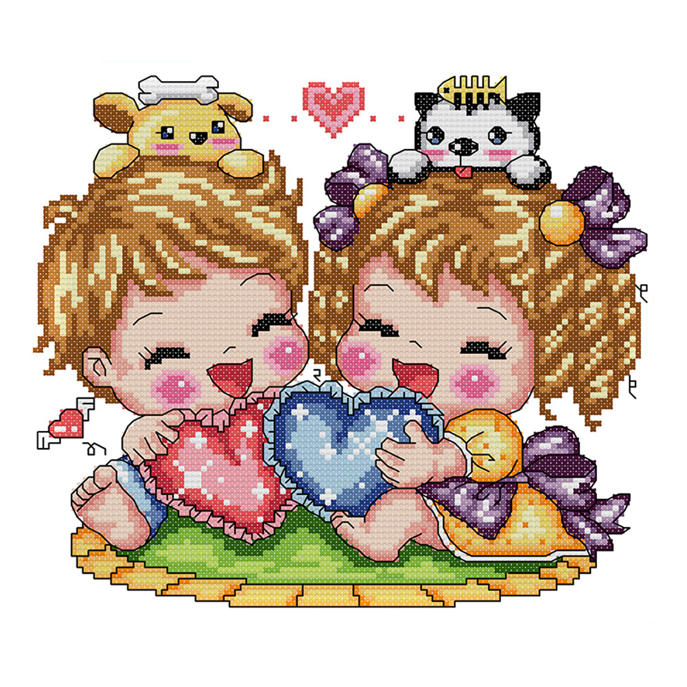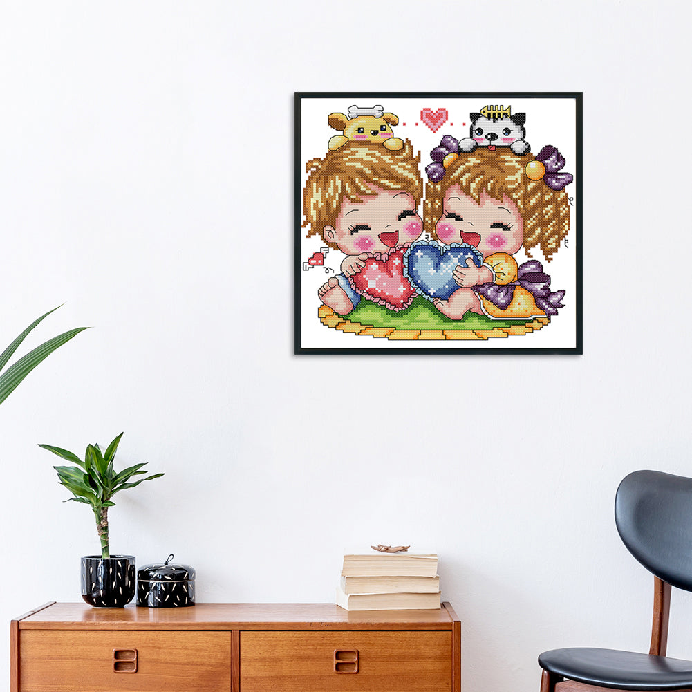 Boy Girl - 14CT Stamped Cross Stitch 27*25CM