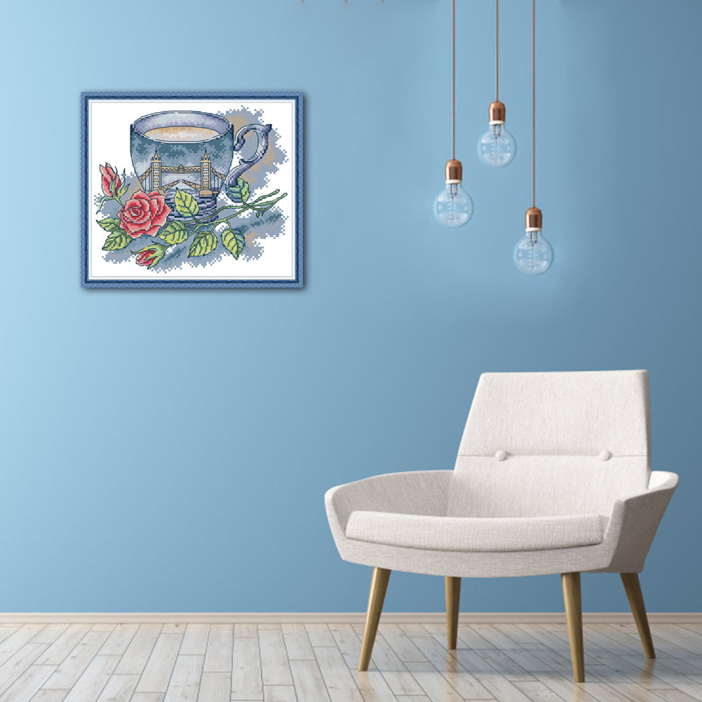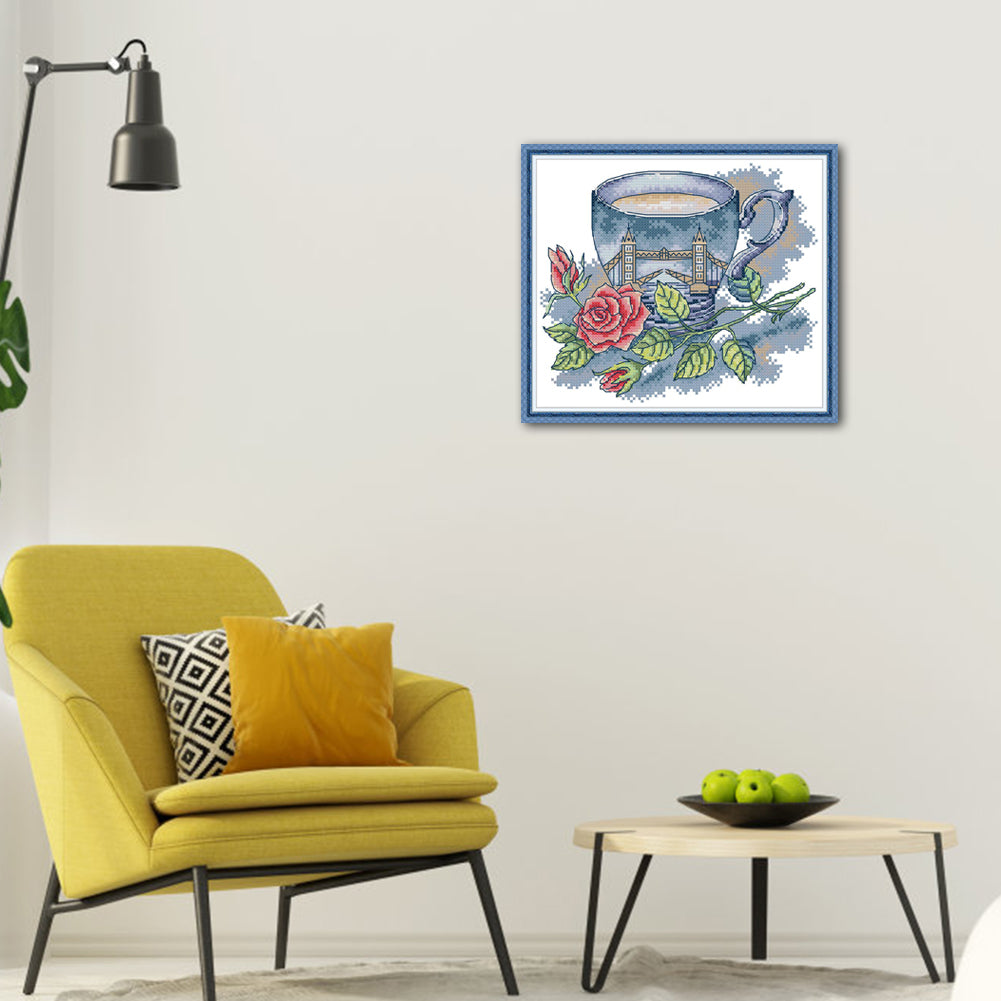 British Teacup - 14CT Stamped Cross Stitch 26*21CM