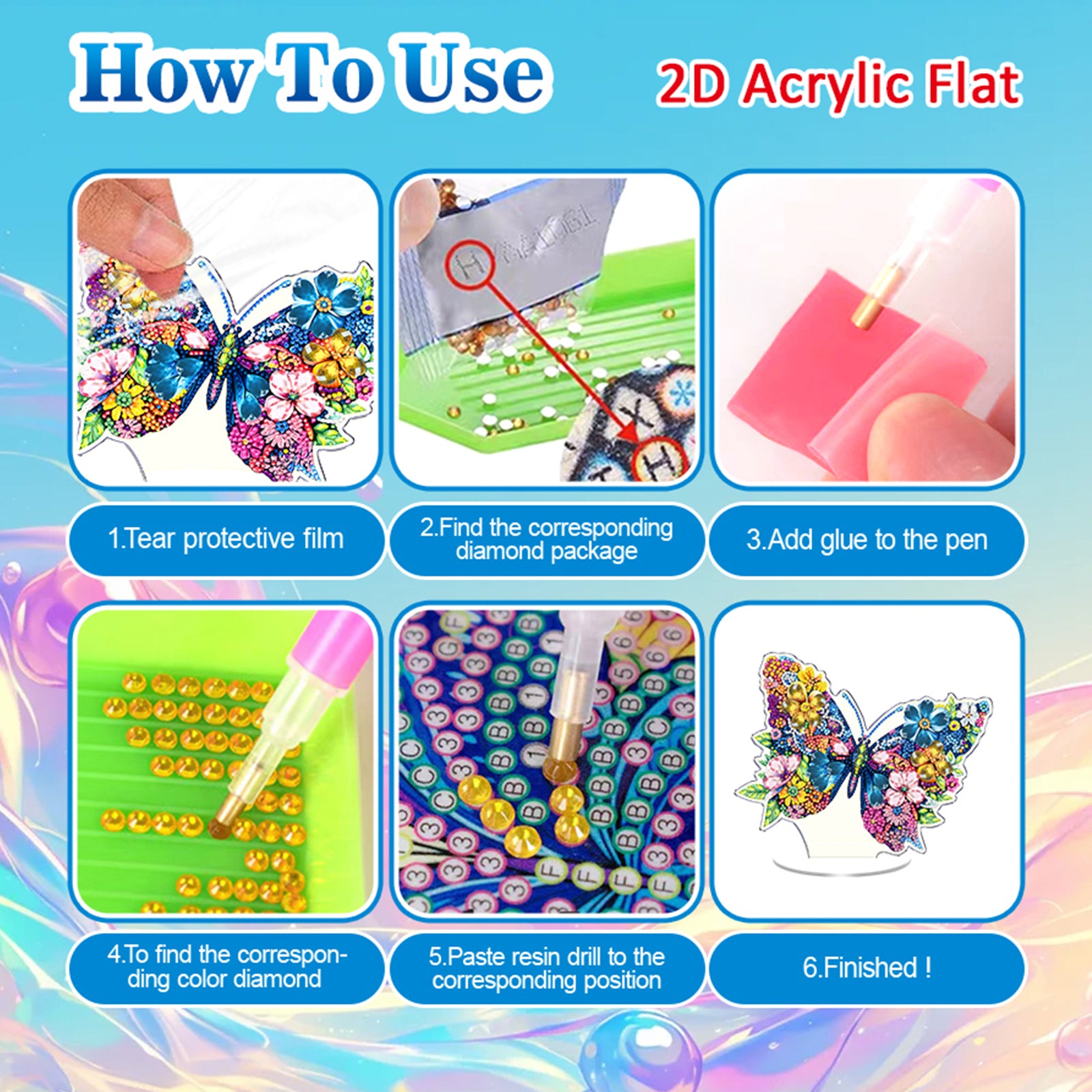 Butterfly DIY 2D Flat Acrylic Diamond Painting Tabletop Ornament for Home Decor