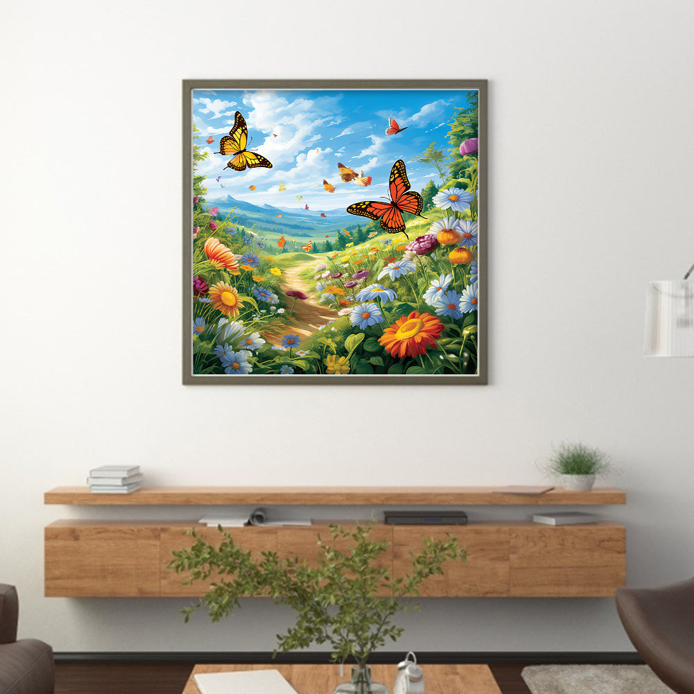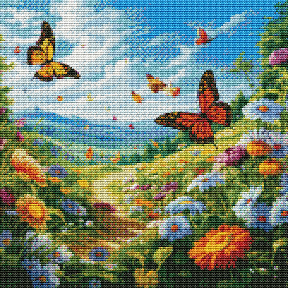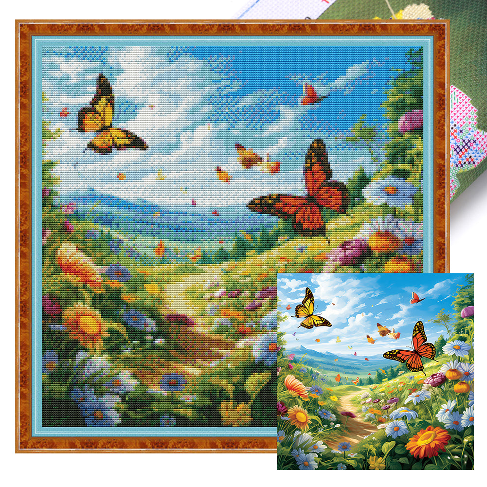 Butterfly In Flowers - 11CT Stamped Cross Stitch 45*45CM
