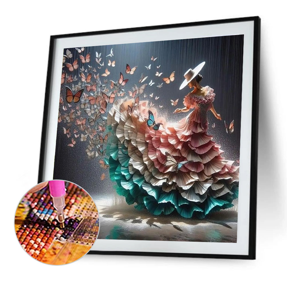 Butterfly Skirt Ladies - Full Round Drill Diamond Painting 40*40CM
