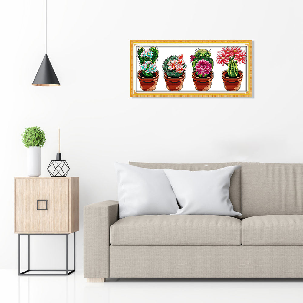 Cactus - 14CT Stamped Cross Stitch 37*17CM