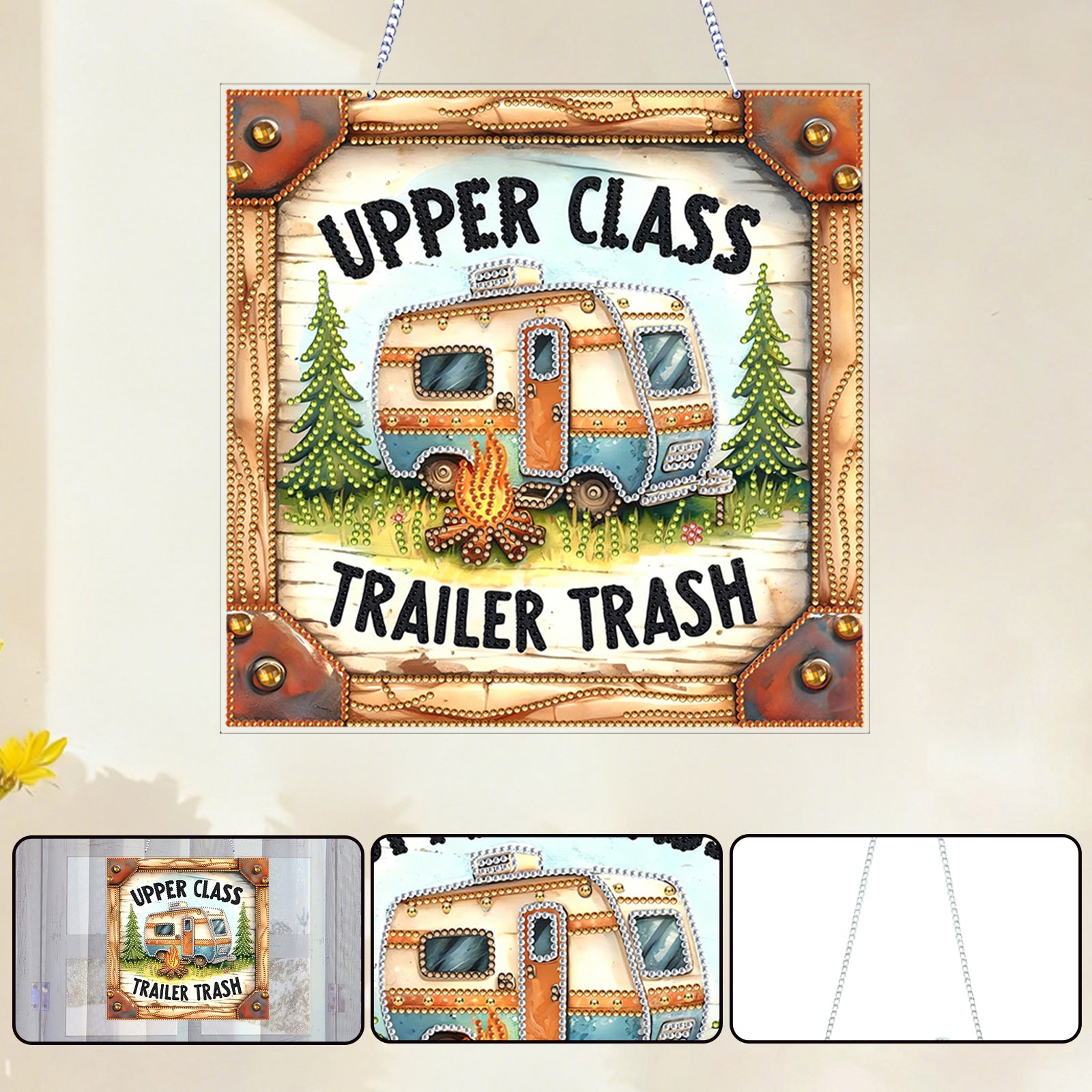 Camping 2D Flat DIY Acrylic Diamond Art Pendant for Adult Gift Home Window Decor
