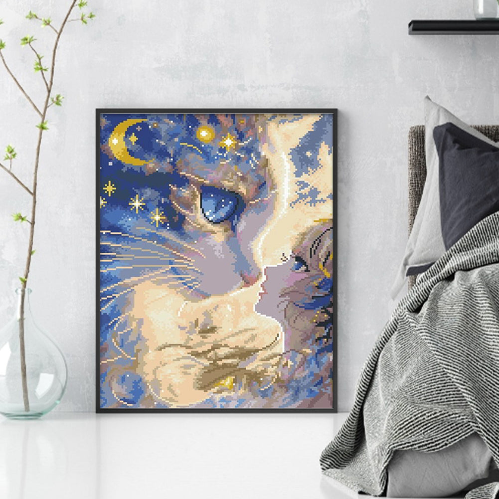 Cartoon Girl Cat - 11CT Stamped Cross Stitch 40*50CM(Mona Lisa Brand)
