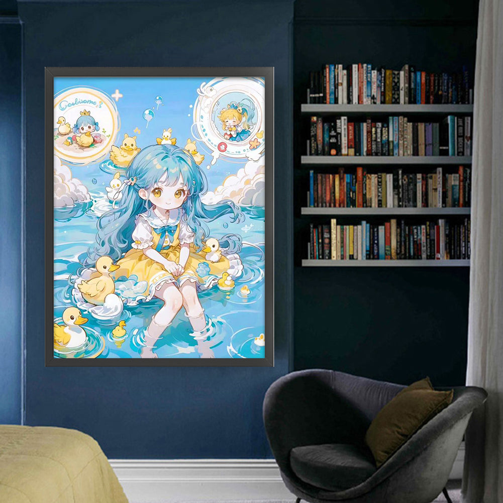 Cartoon Little Girl And Little Duck - 11CT Stamped Cross Stitch 50*65CM