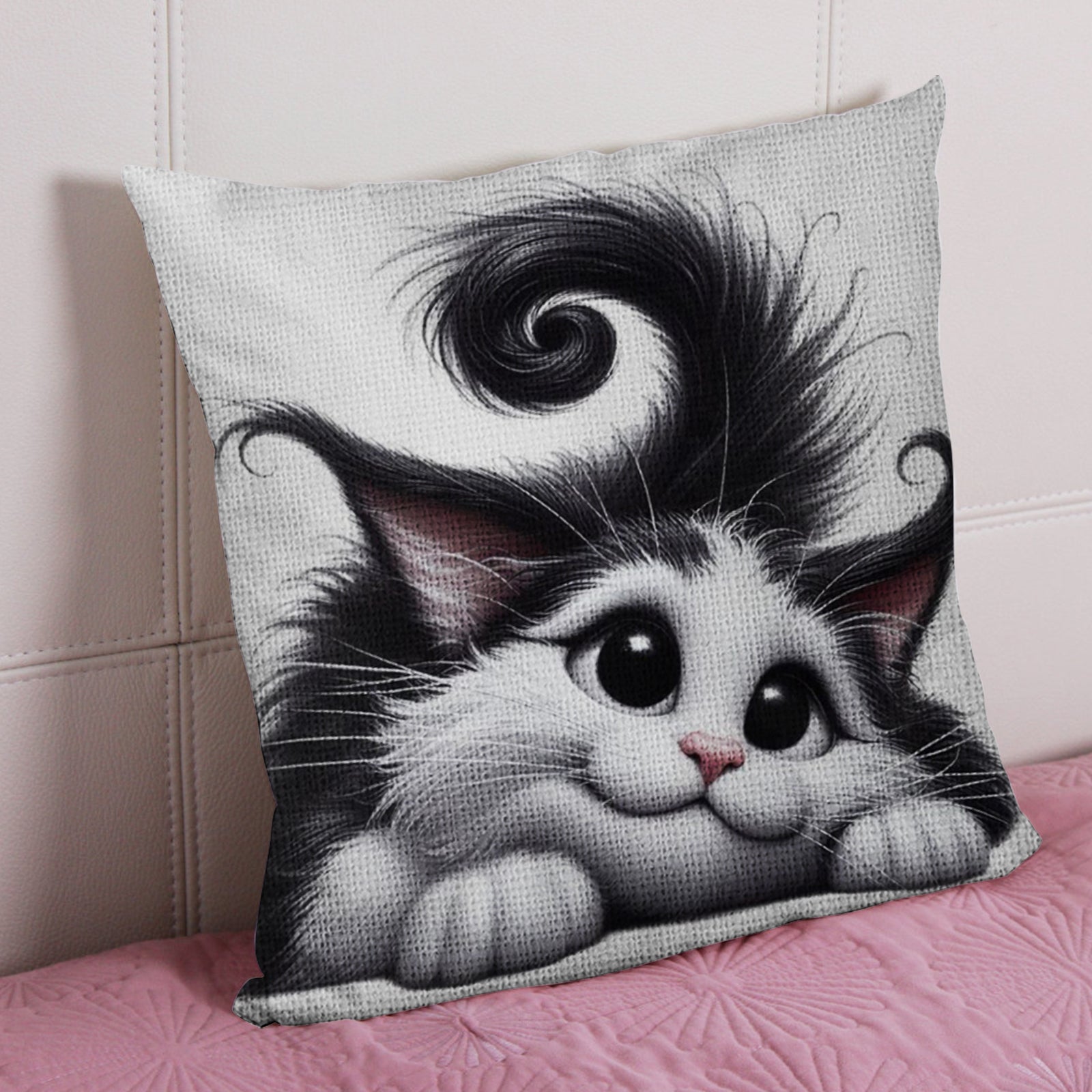 Cat 11CT DIY Stamped Cross Stitch Pillow Kit 45x45cm for Adults Home Decor (D)