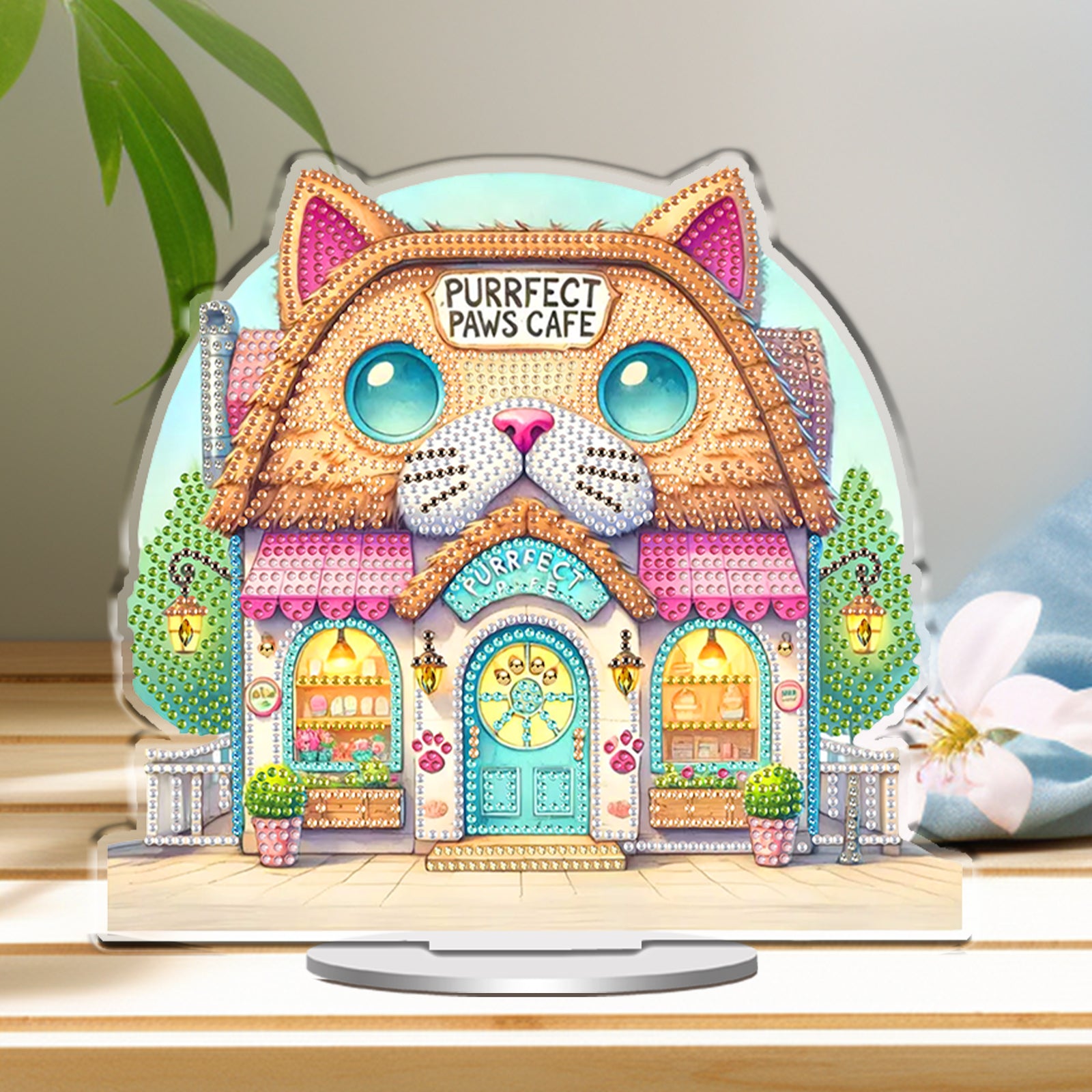 Cat House DIY 2D Flat Acrylic Desktop Diamond Art Kit 24x22cm Desktop Decor