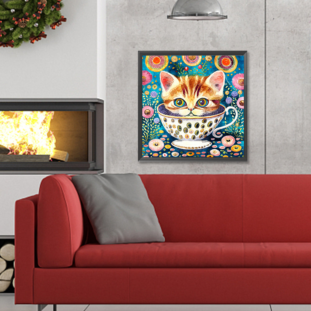 Cat In Teacup - Full Round Drill Diamond Painting 30*30CM