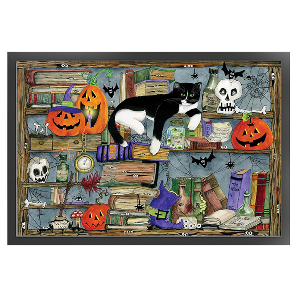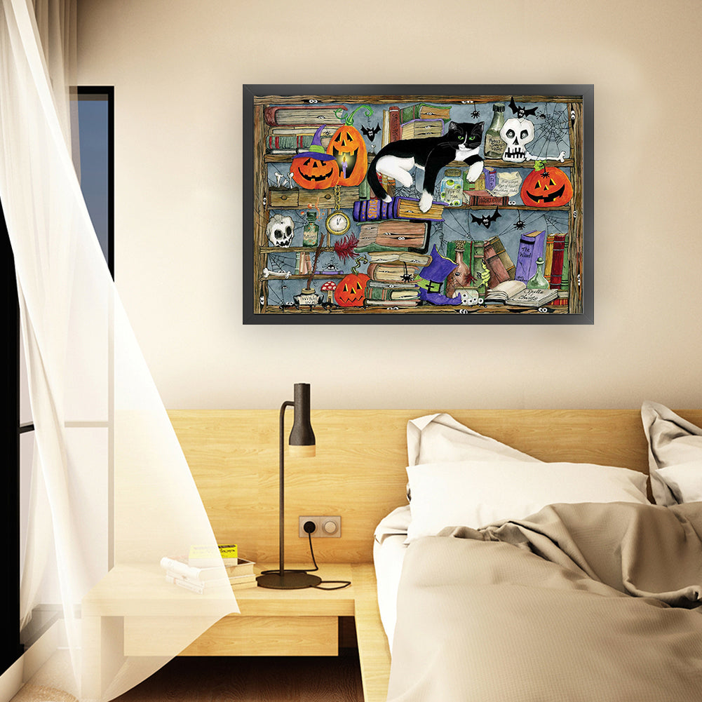 Cat On Bookshelf - 11CT Stamped Cross Stitch 65*45CM