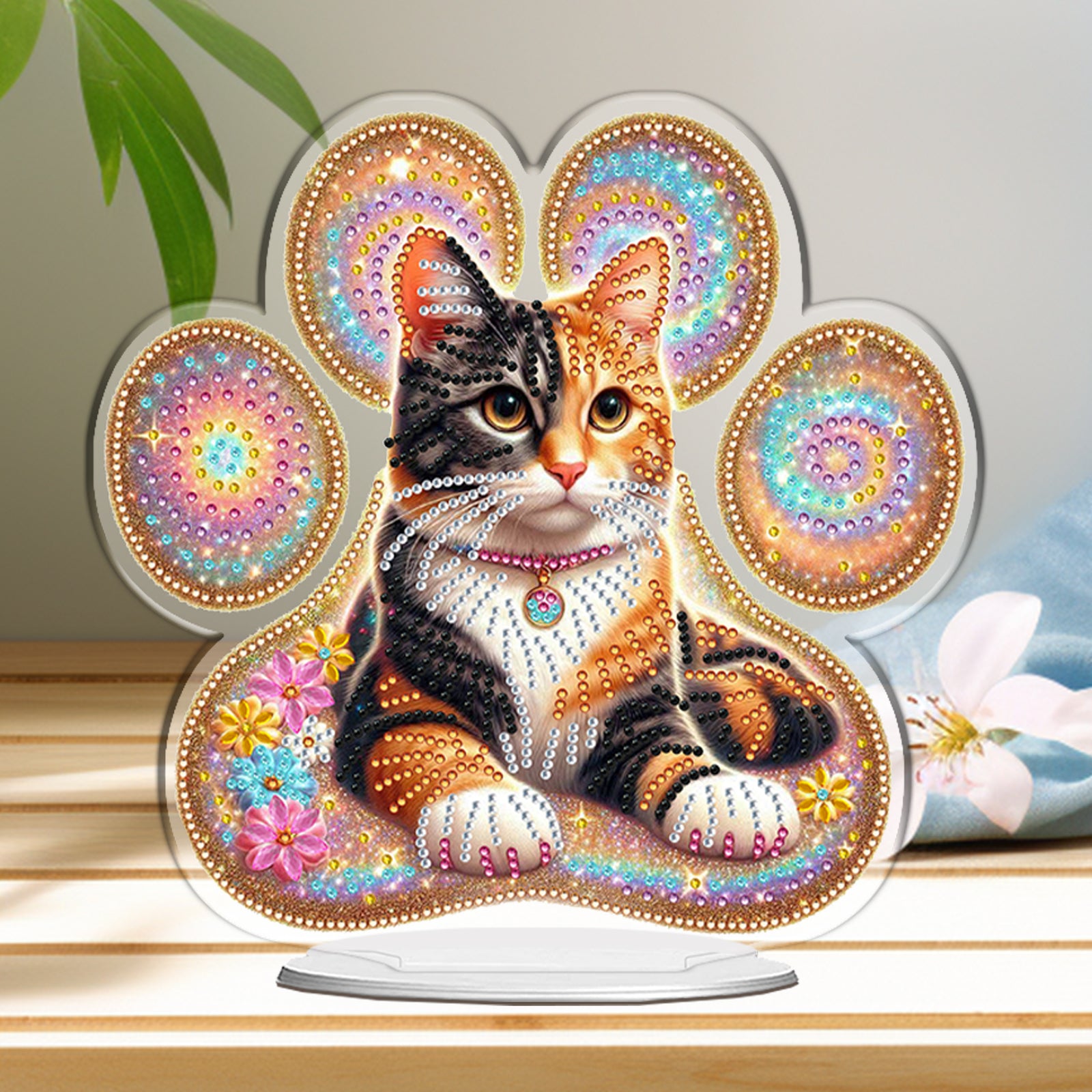 Cat Paw DIY 2D Flat Acrylic Diamond Painting Desktop Ornaments Kit 24*22cm Home