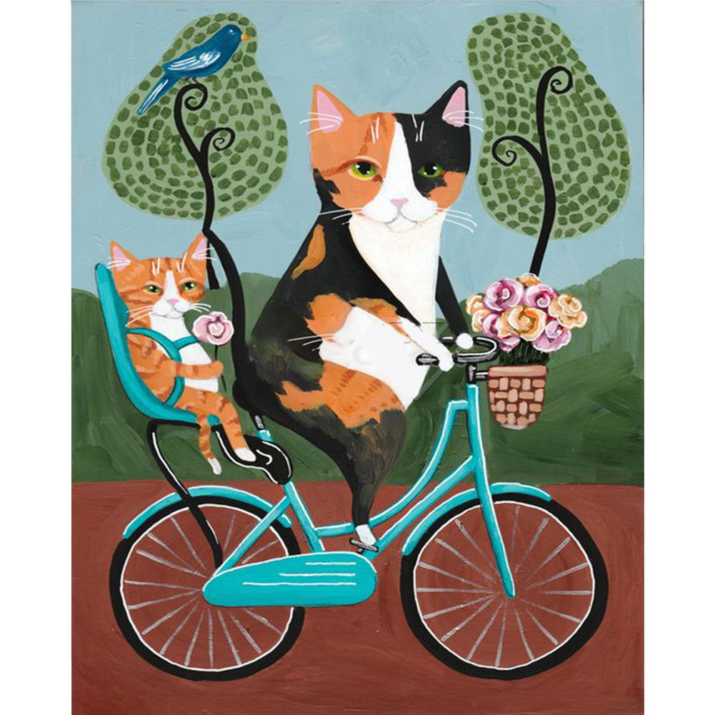 Cat Riding A Bicycle - 11CT Stamped Cross Stitch 40*50CM