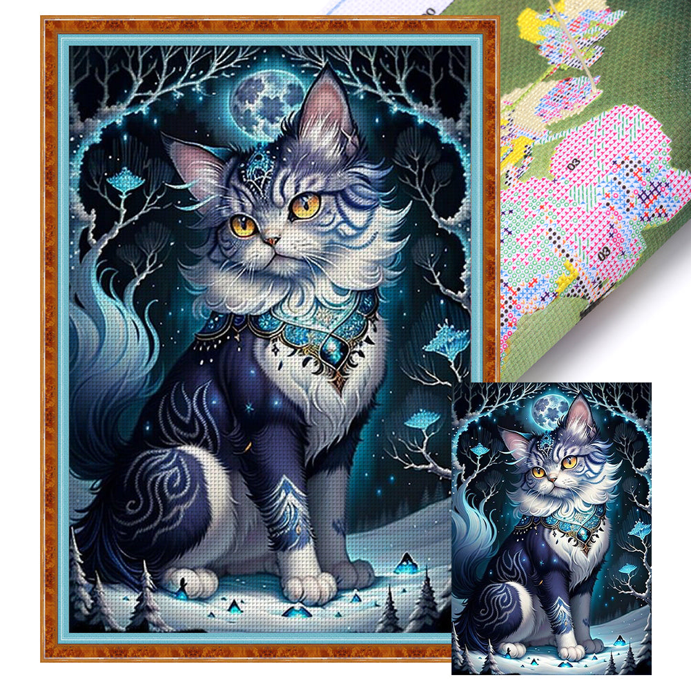 Cat Under The Moon - 18CT Stamped Cross Stitch 35*50CM