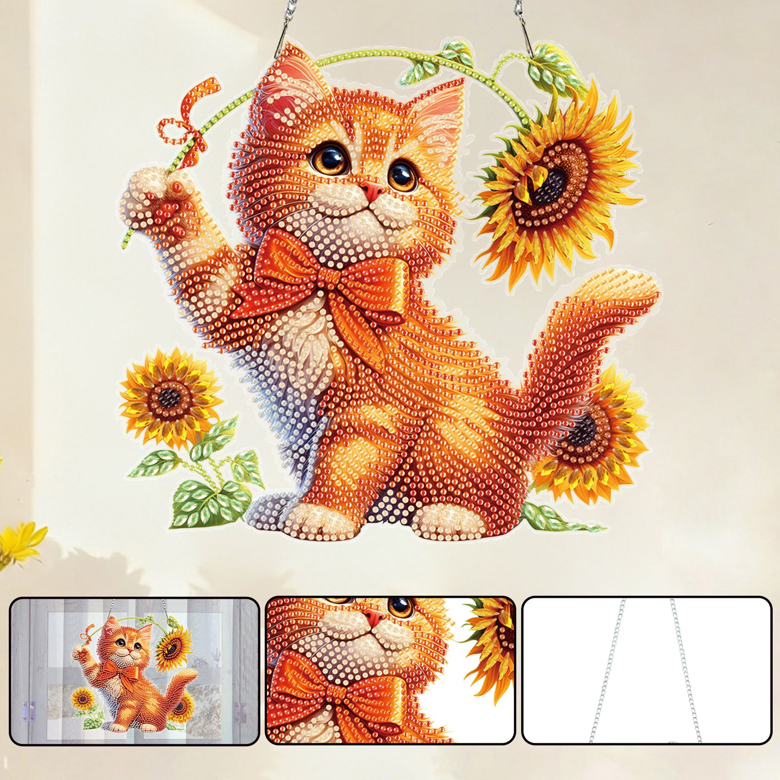 Cats Sunflower 2D Flat DIY Special Shape Hanging Diamond Art Kits Wall Decor
