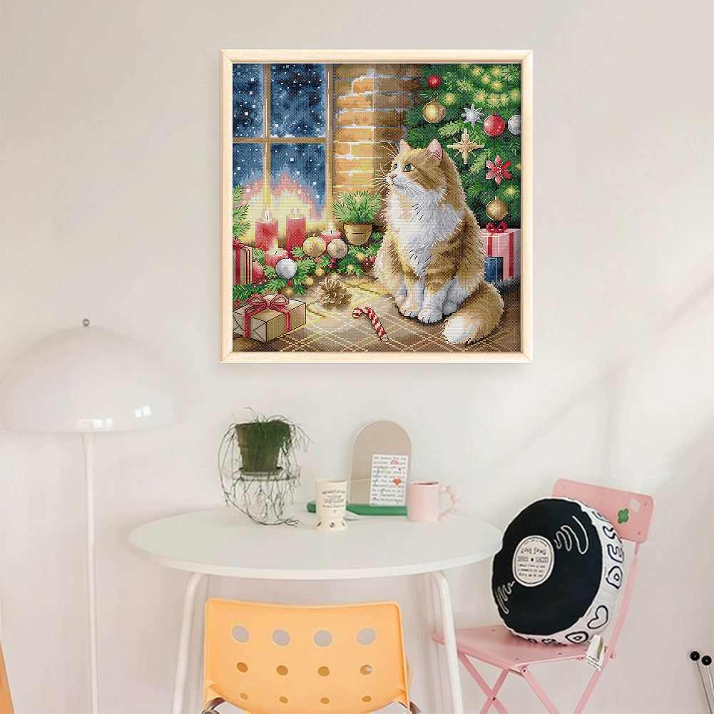 Christmas Cat - 14CT Stamped Cross Stitch 42*43CM (Joy Sunday)