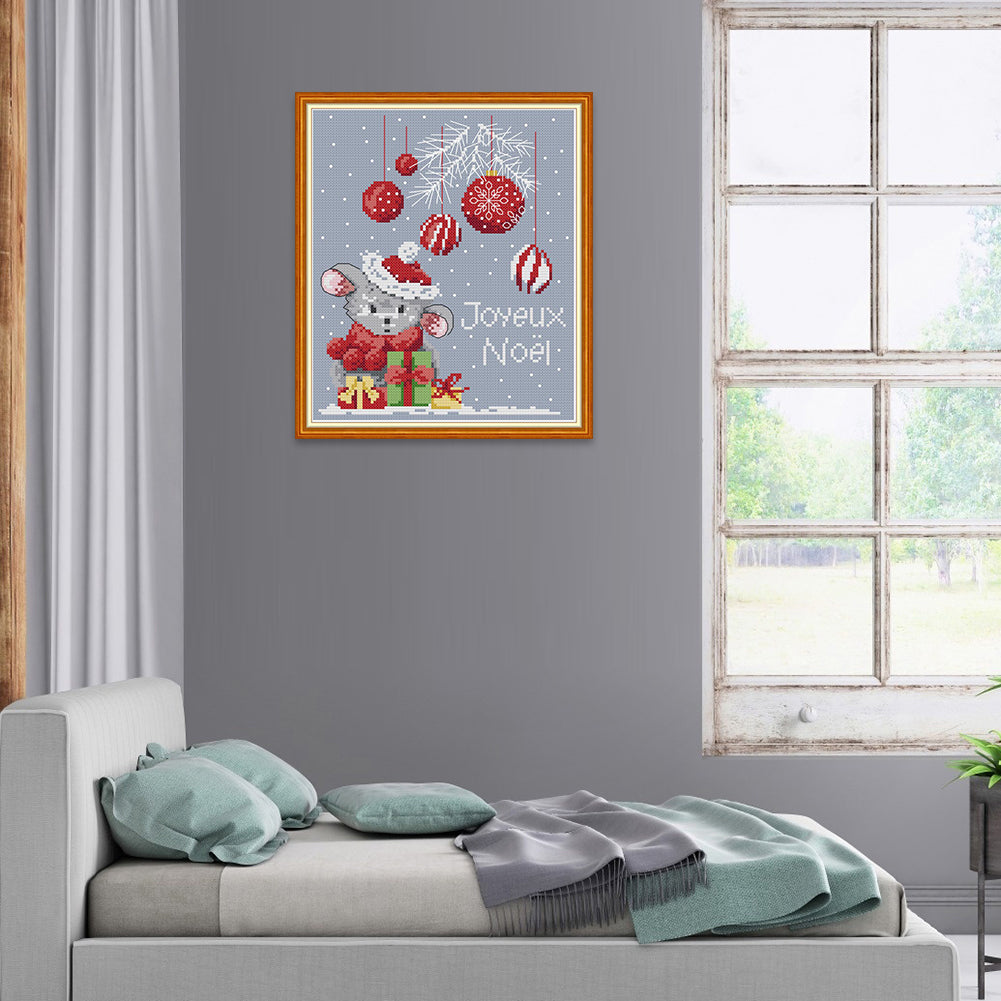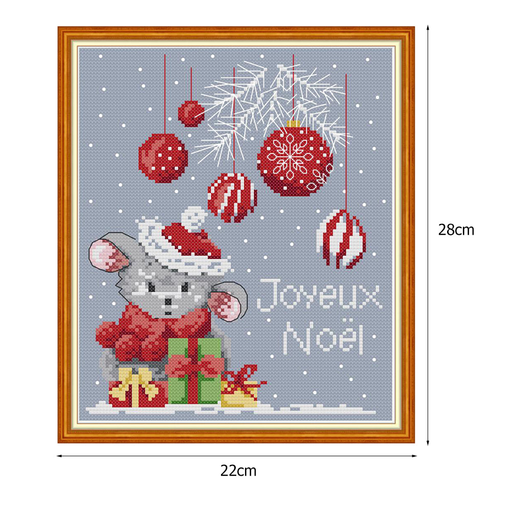 Christmas Rat - 14CT Stamped Cross Stitch 22*28CM
