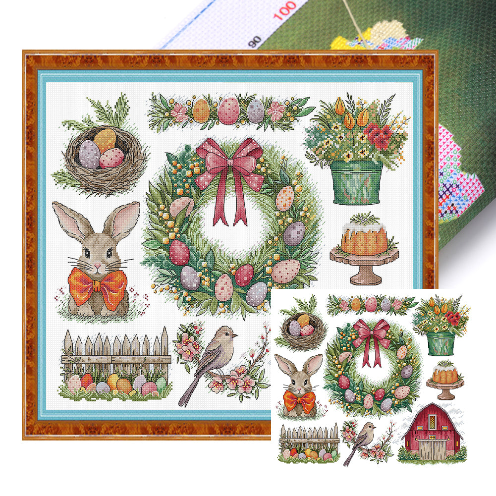 Christmas Wreath And Rabbit - 14CT Stamped Cross Stitch 51*44CM(Joy Sunday)