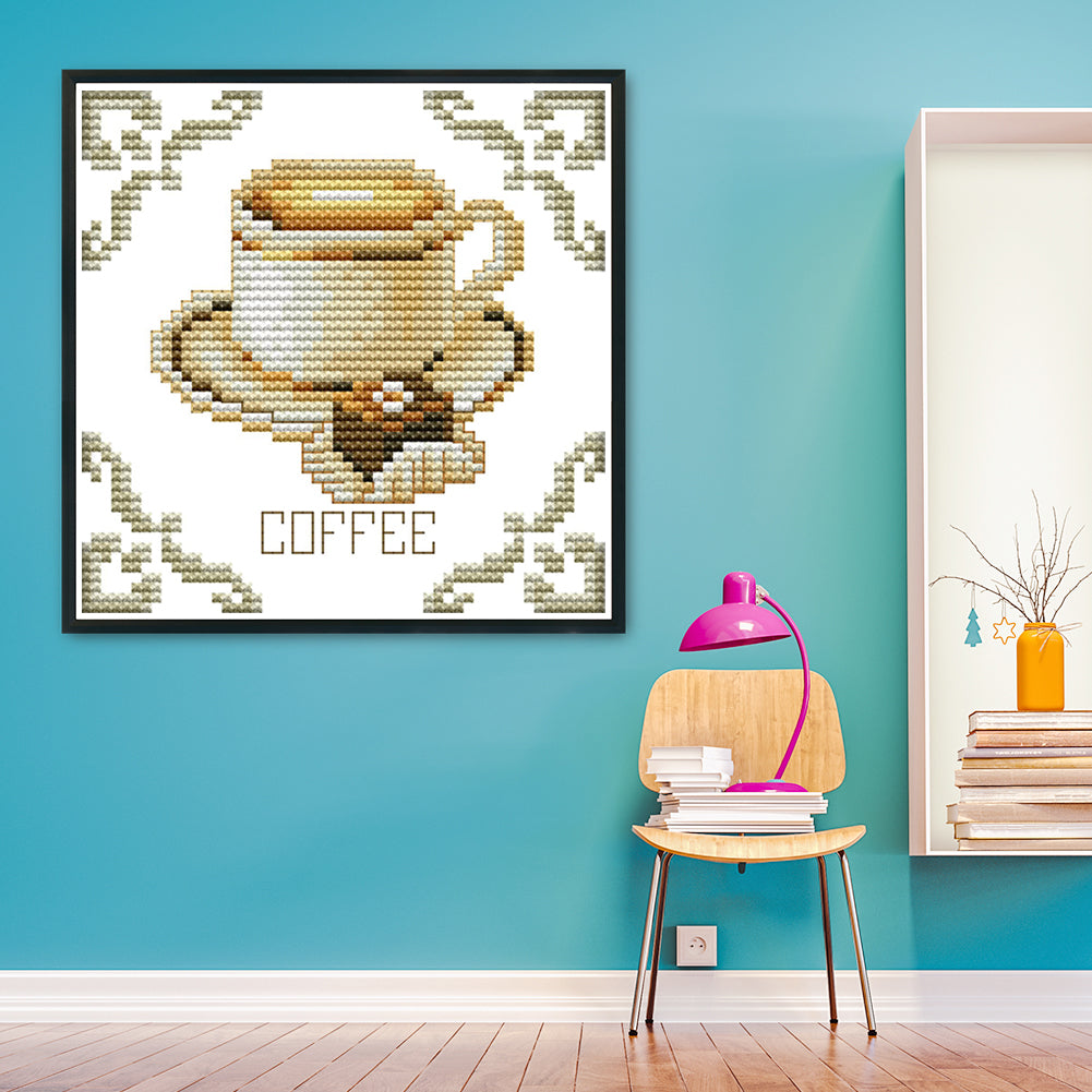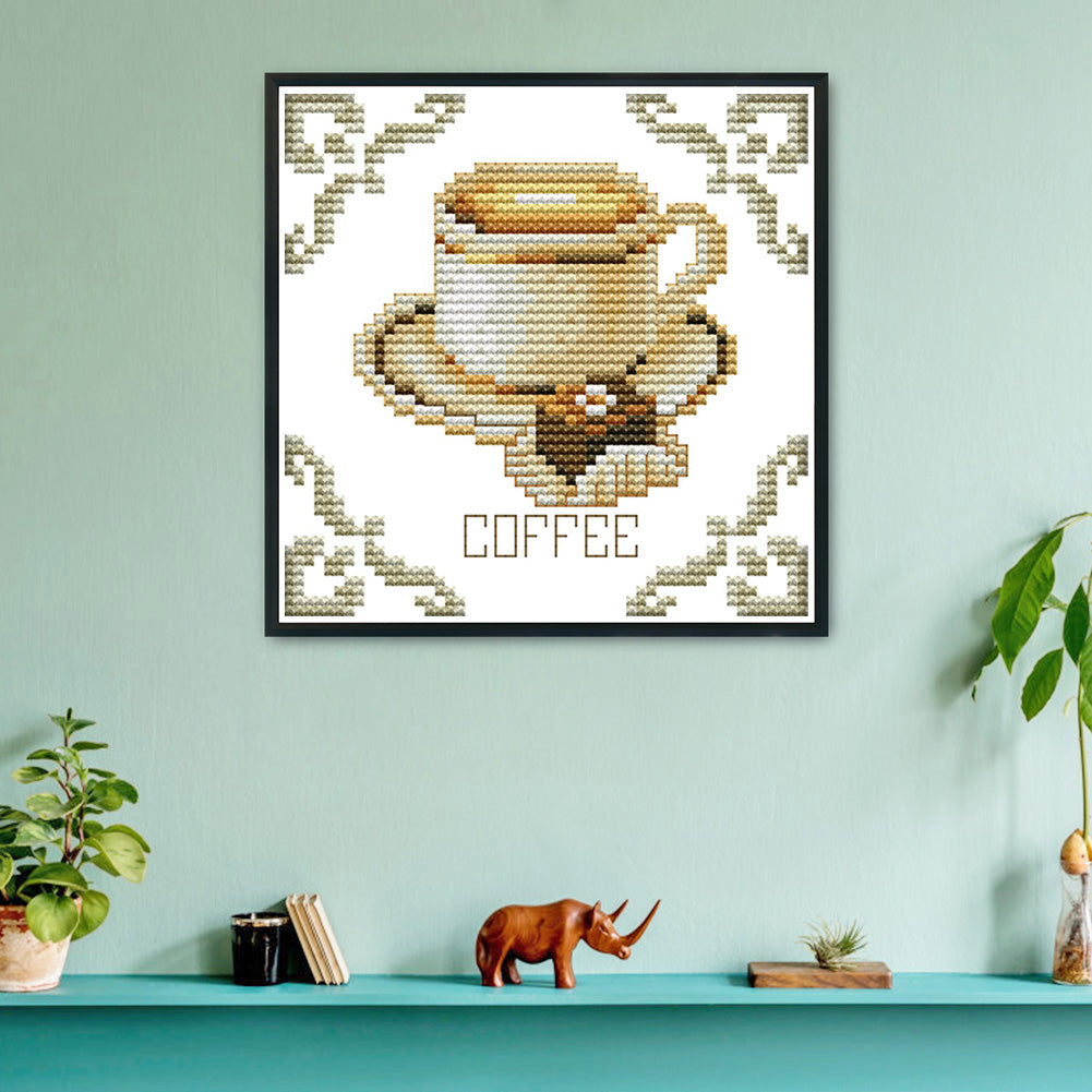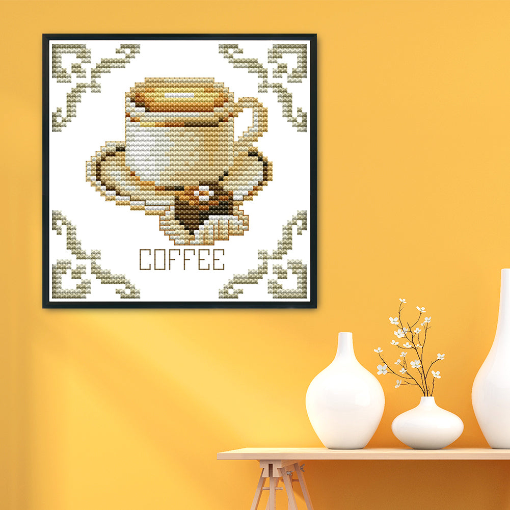 Coffee Dessert - 14CT Stamped Cross Stitch 15*15CM