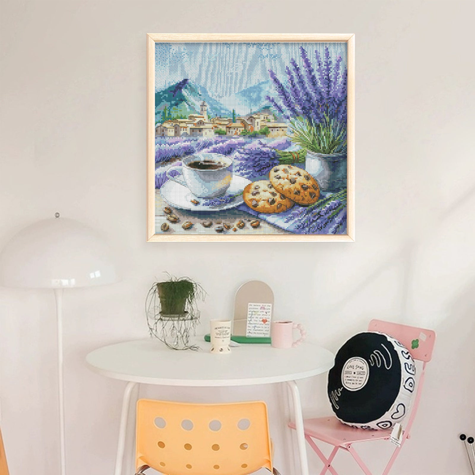 Coffee Lavender - 14CT Stamped Cross Stitch 40*40CM (Egyptian cotton)(Fairy Brand)