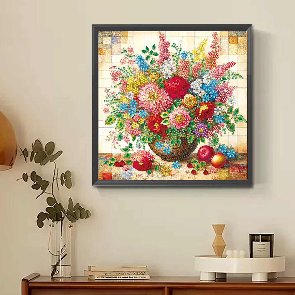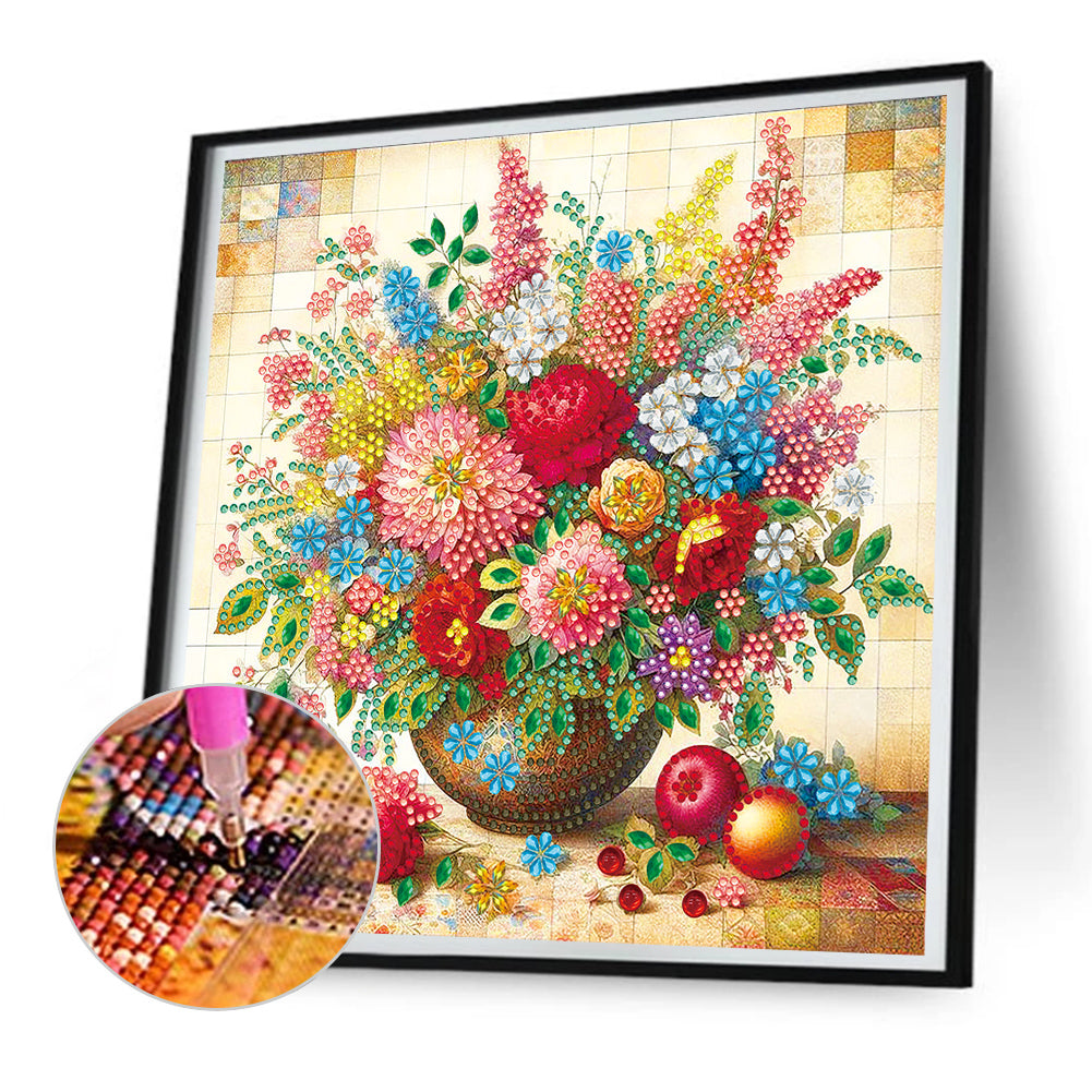 Colorful Flowers In A Vase - Partial Special-Shaped Drill Diamond Painting 30*30CM