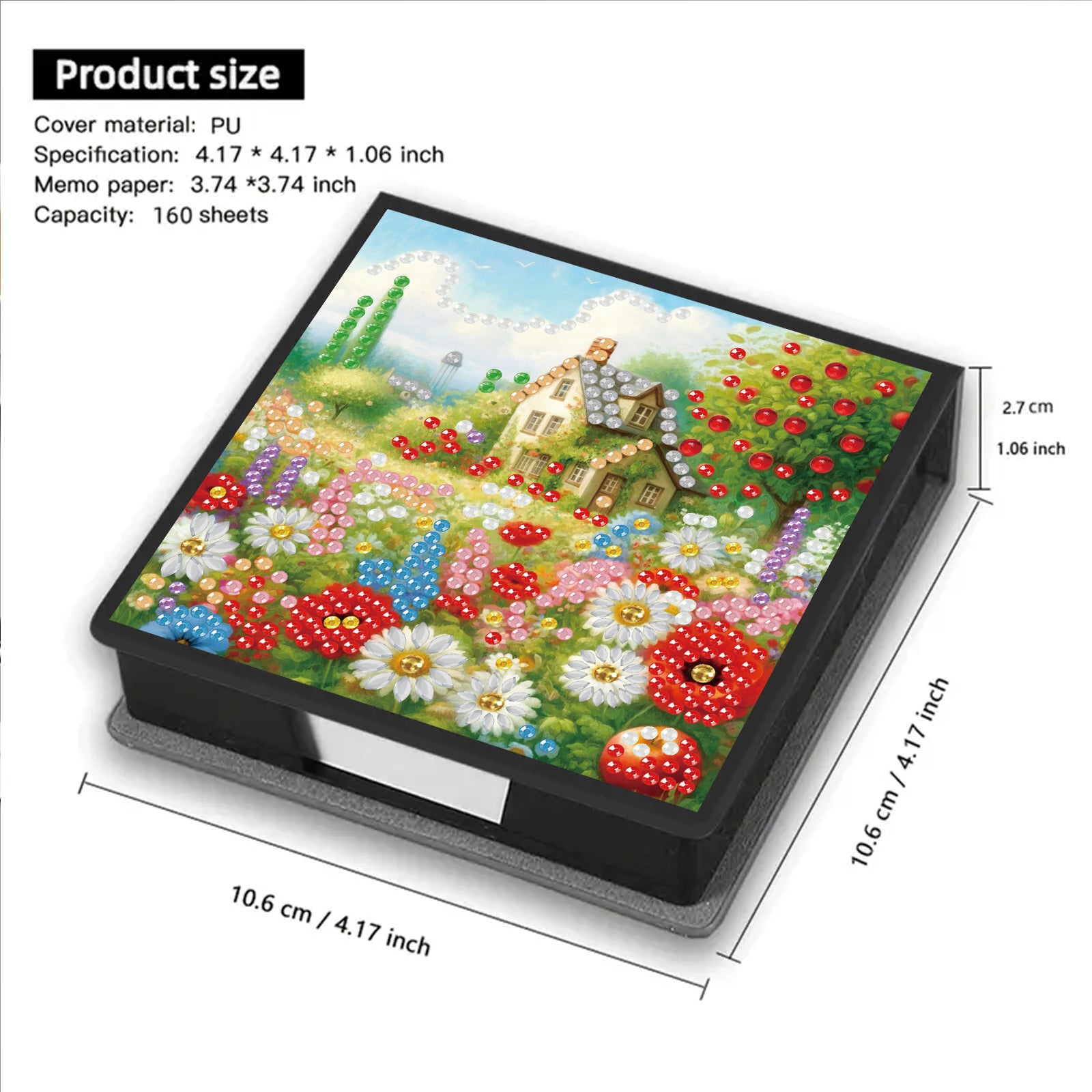 Cottage Garden PU DIY 5D Diamond Painting Note Box w/160 Sheets for Office Home