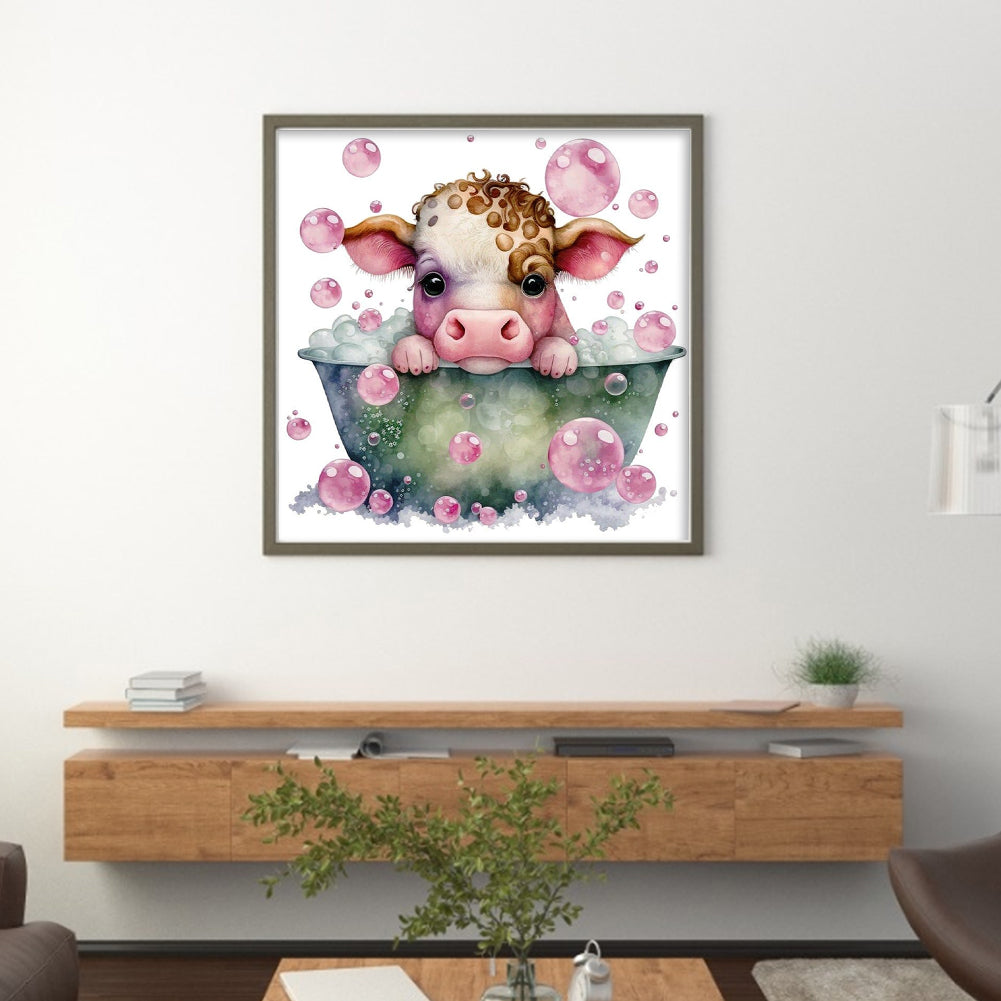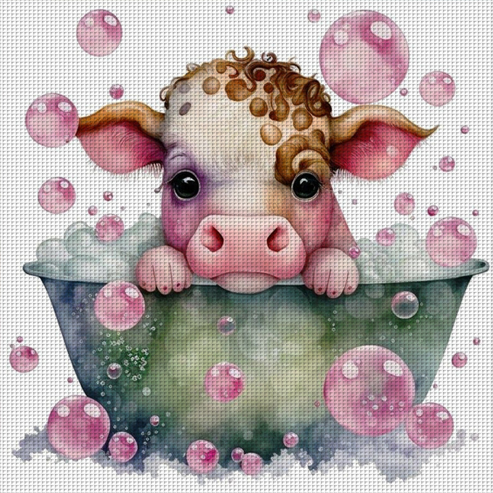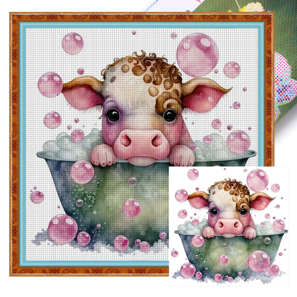 Cow Taking A Bath - 11CT Stamped Cross Stitch 40*40CM