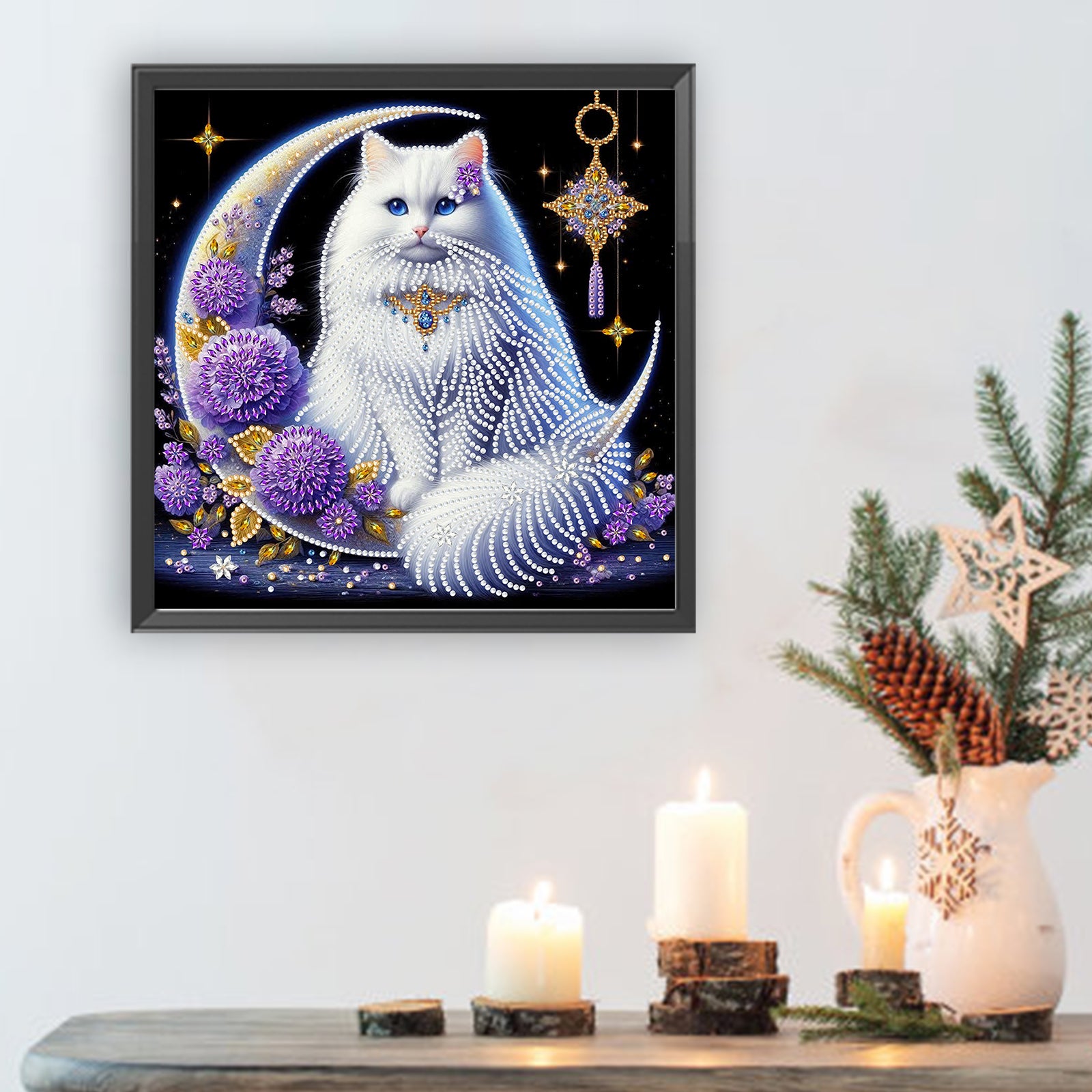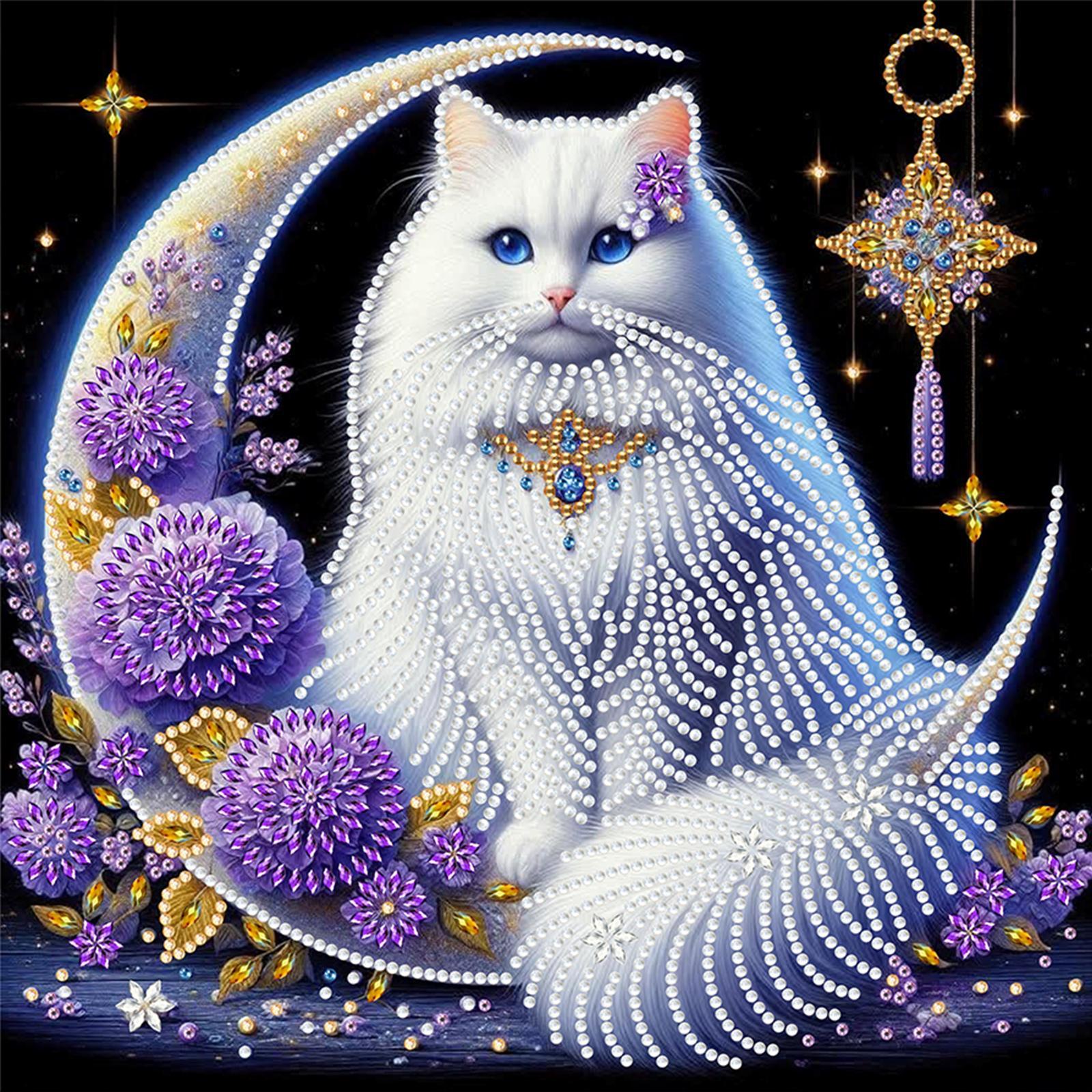 Crescent Moon Cat - Special Shaped Drill Diamond Painting 30*30CM