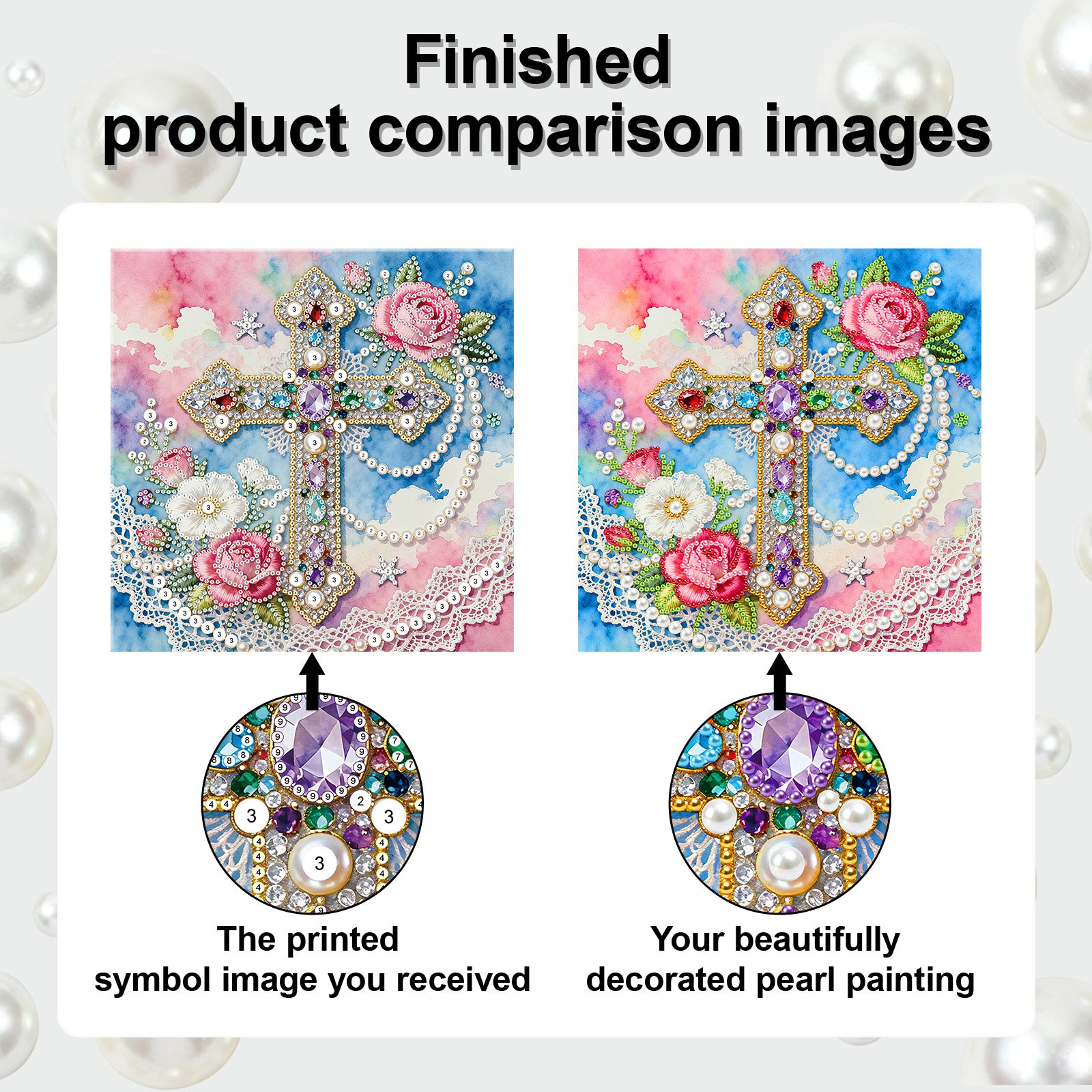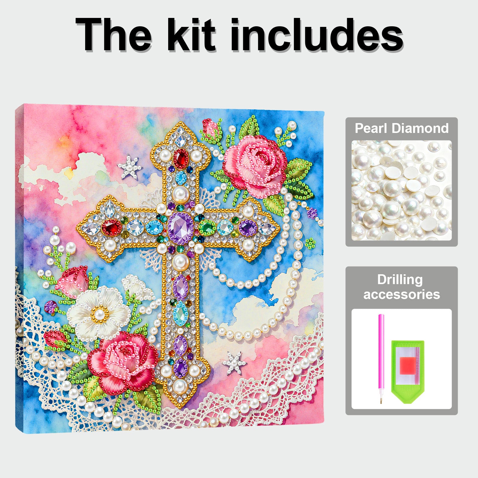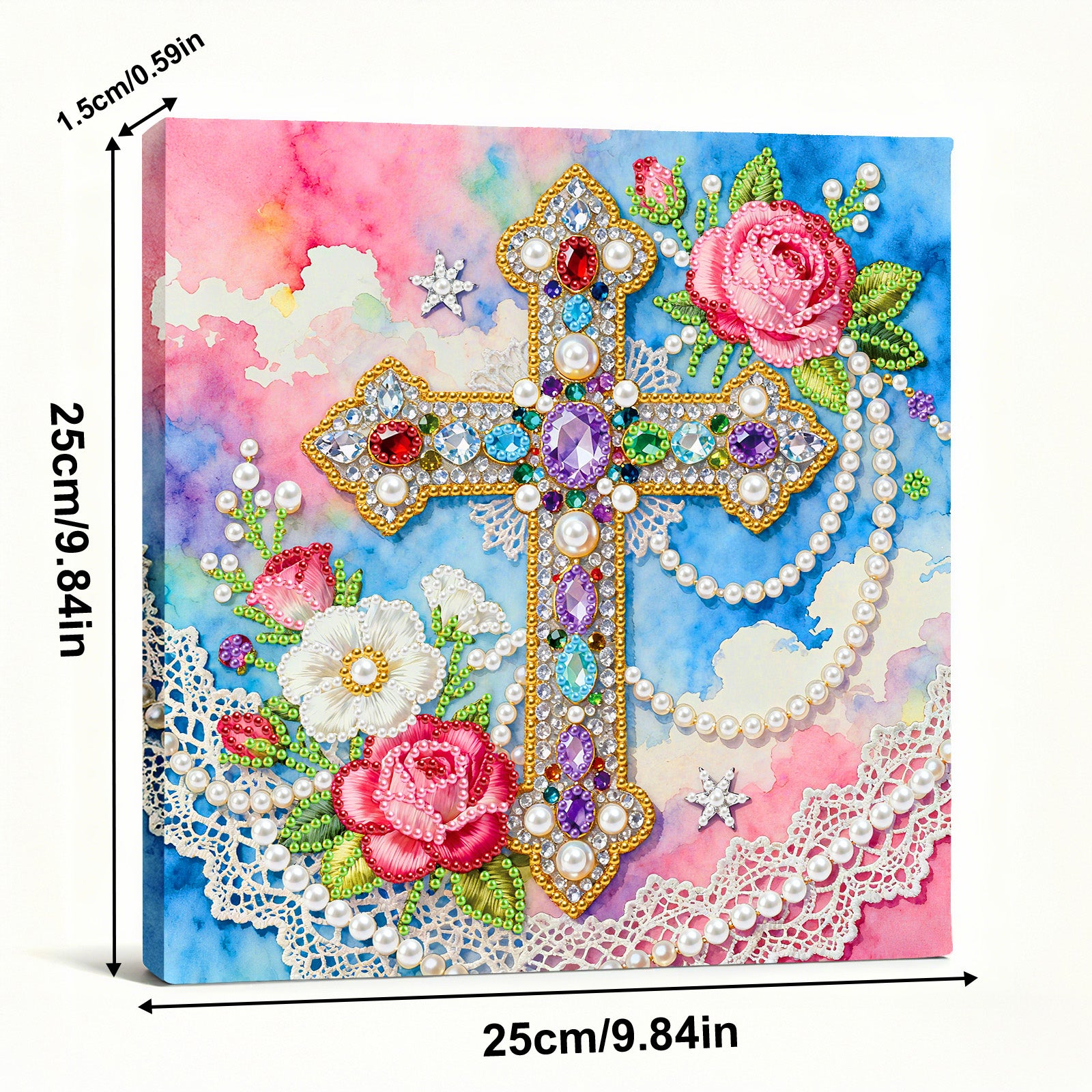 Cross - DIY Pearl Gem Art Diamond Painting Kits With Framefor Home Decor -25x25cm