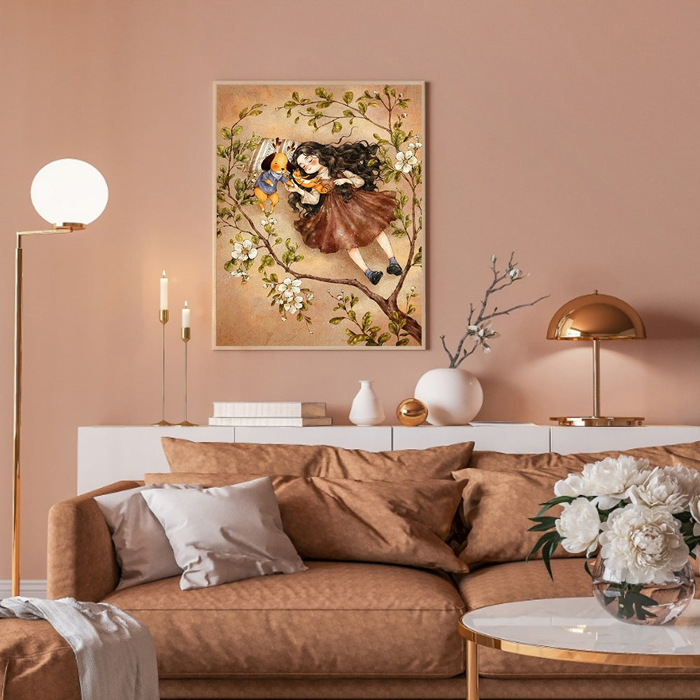 Curly-Haired Girl Lying On The Lawn - Full Square Drill Diamond Painting 30*40CM