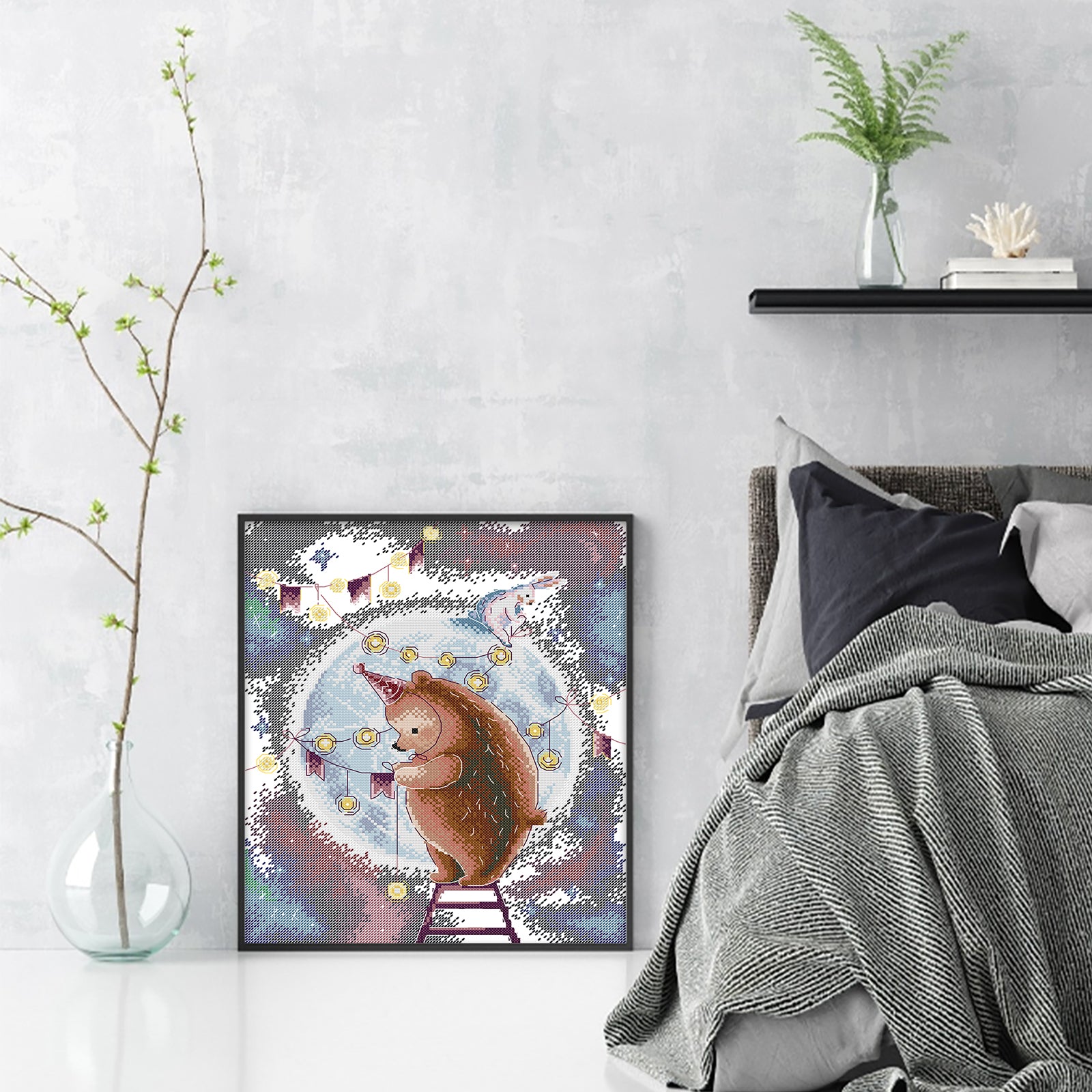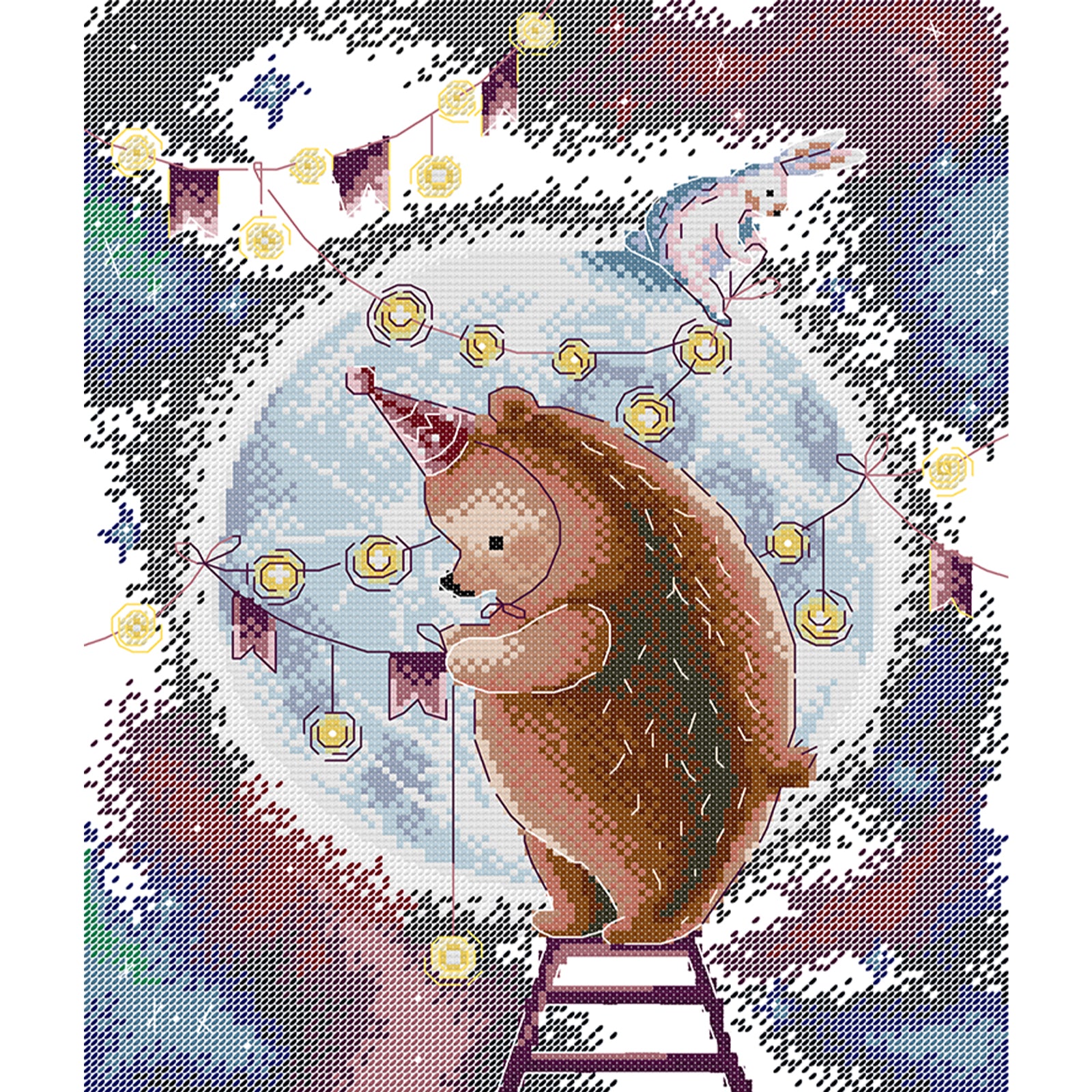 Decorated Moon - 14CT Stamped Cross Stitch 31*36CM (Joy Sunday)
