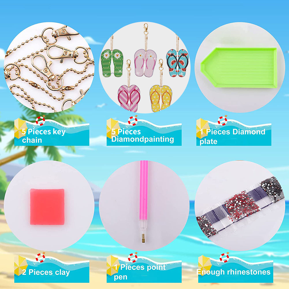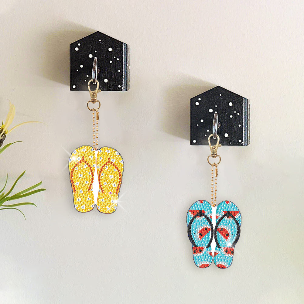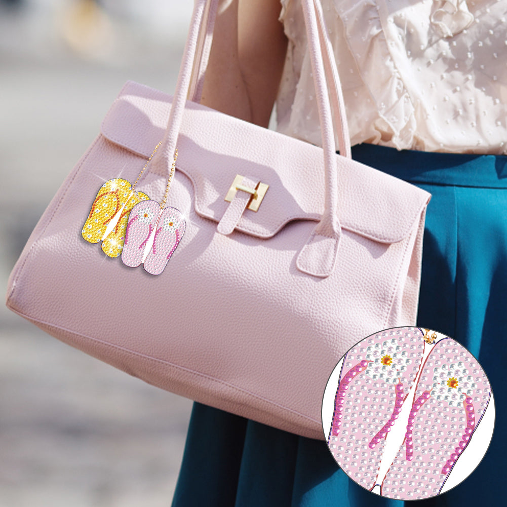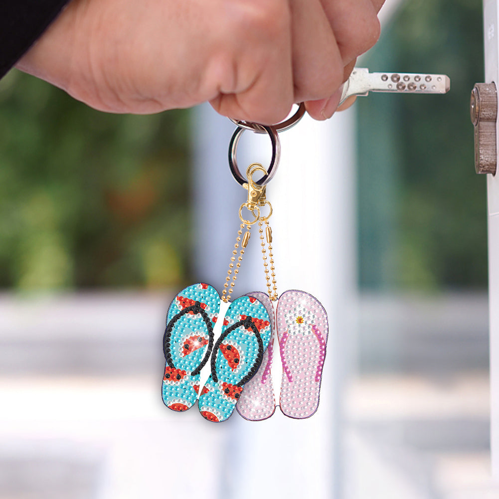 DIY Crystal Diamond Key Rings Handmade Slippers Double Sided Craft for Women Bag