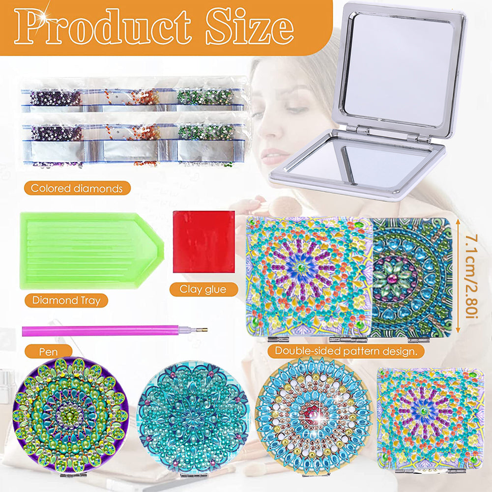 DIY Crystal Diamond Mirror Portable Mandala Art Craft Set Pocket Mirror for Girl