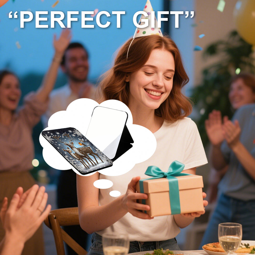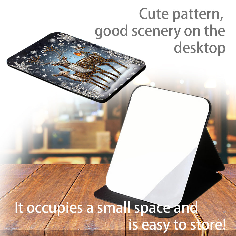DIY Diamond Art Shiny Crystal Mirror Lightweight Standing Makeup Mirror (Elk)
