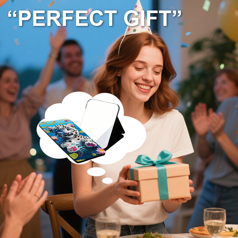 DIY Diamond Art Shiny Crystal Mirror Lightweight Standing Makeup Mirror (Tiger)