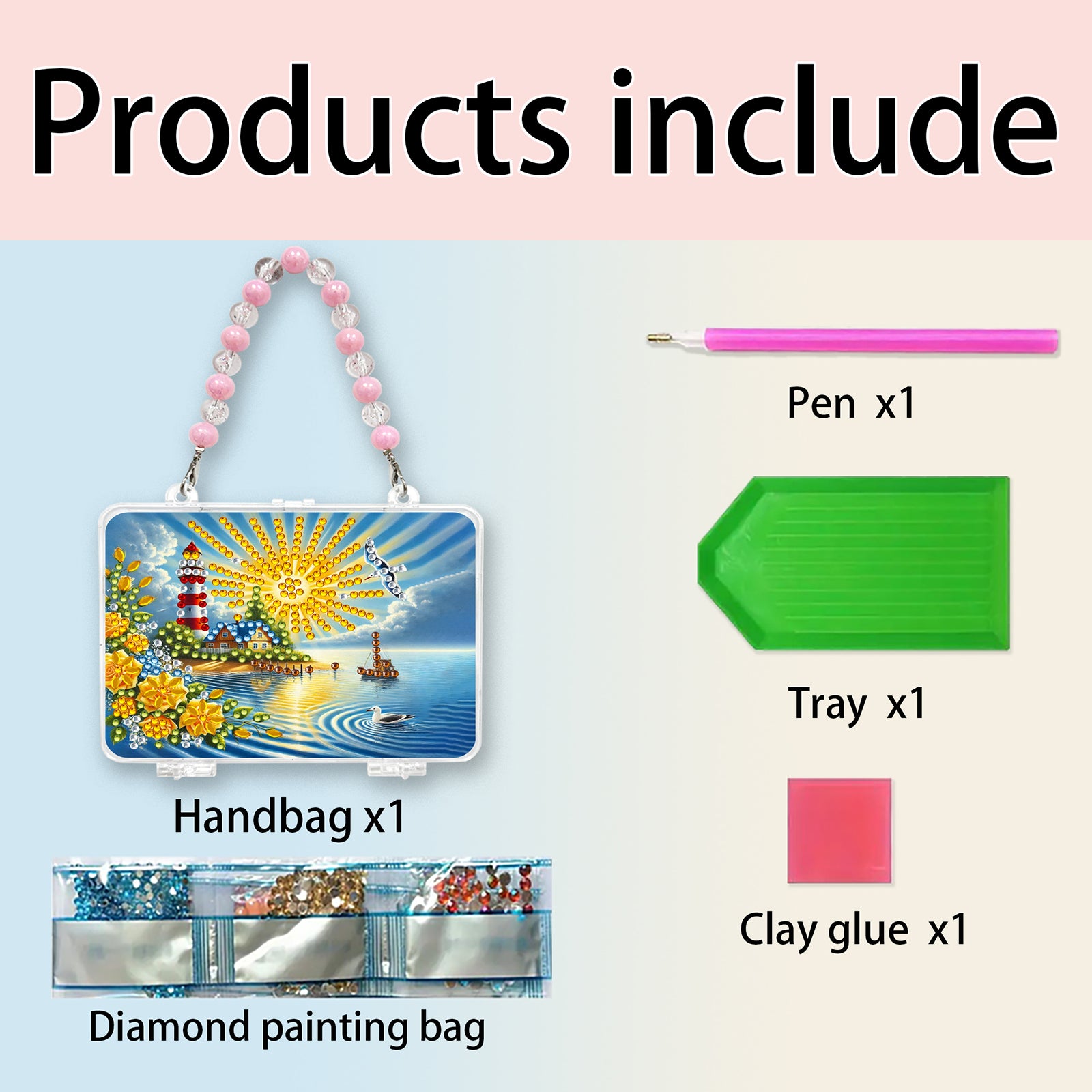 DIY Diamond Painting Bead Storage Handbag Rhinestones Jewelry Case (Lighthouse)