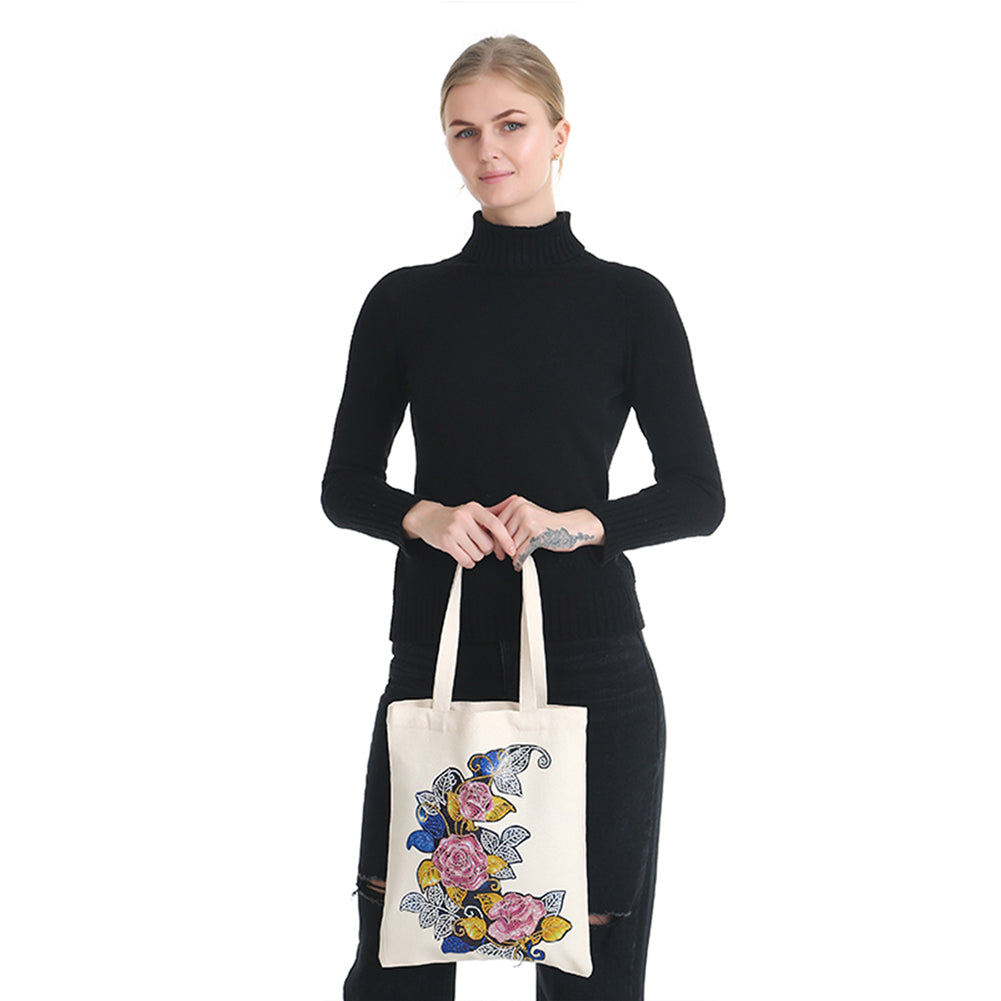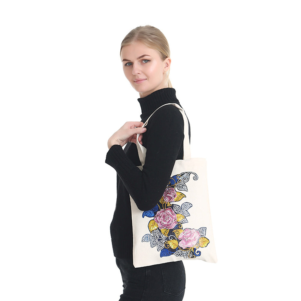 DIY Diamond Painting Handbag Reusable Shoulder Shopping Tote (BB007 Flower)