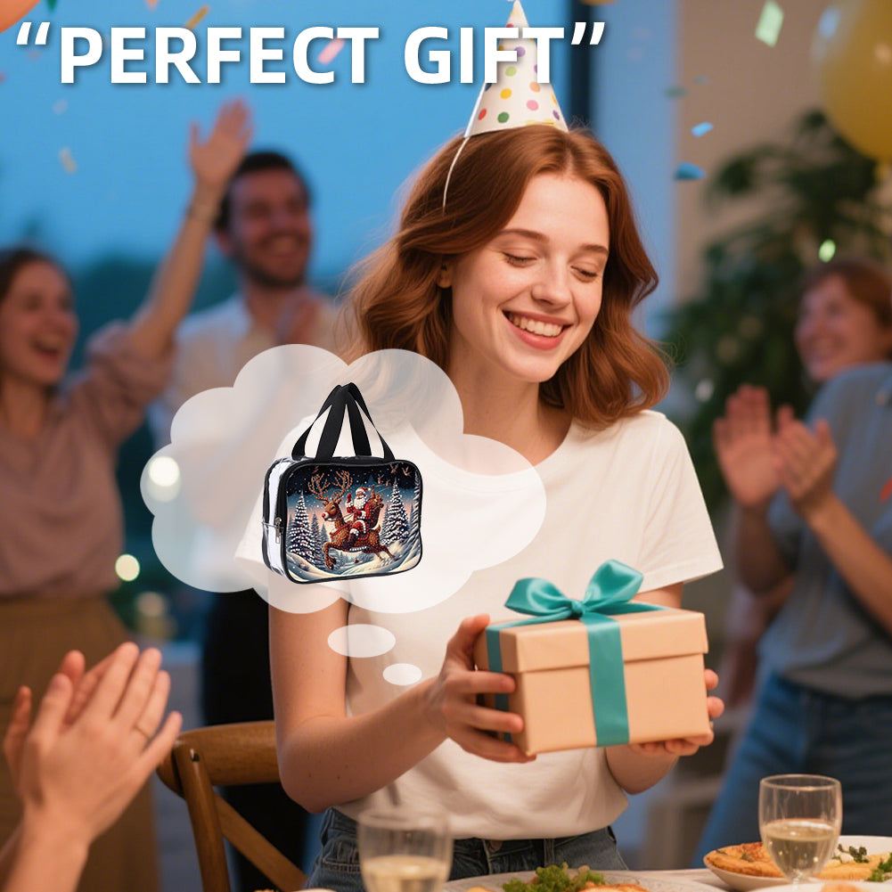 DIY Santa Claus Diamond Painting Bling Rhinestone Makeup Bag Large Storage Bag