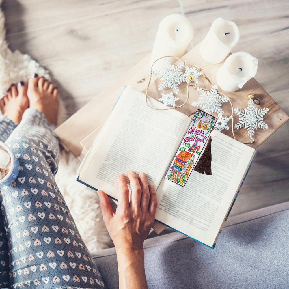 DIY Special Shaped Diamond Painting House Leather Bookmark Tassel Marker