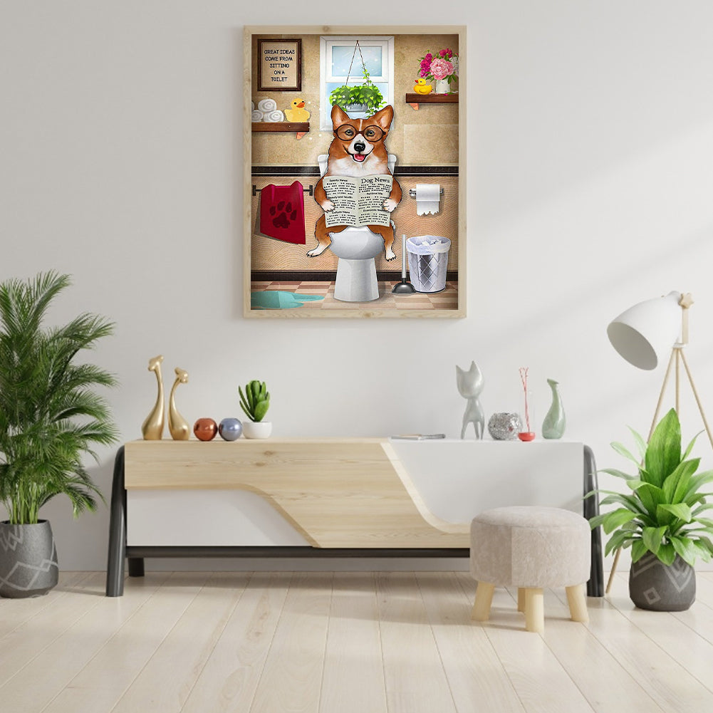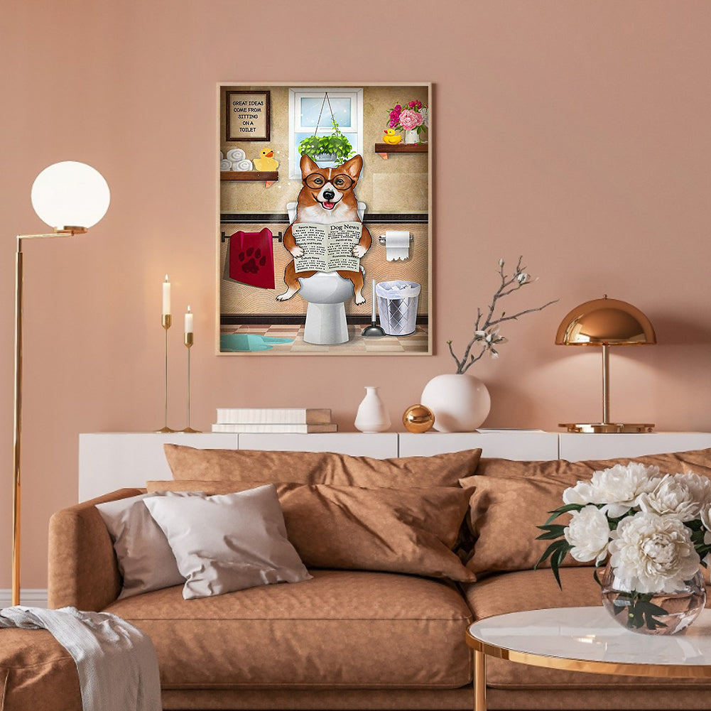 Dog On Toilet - Full Round Drill Diamond Painting 30*40CM