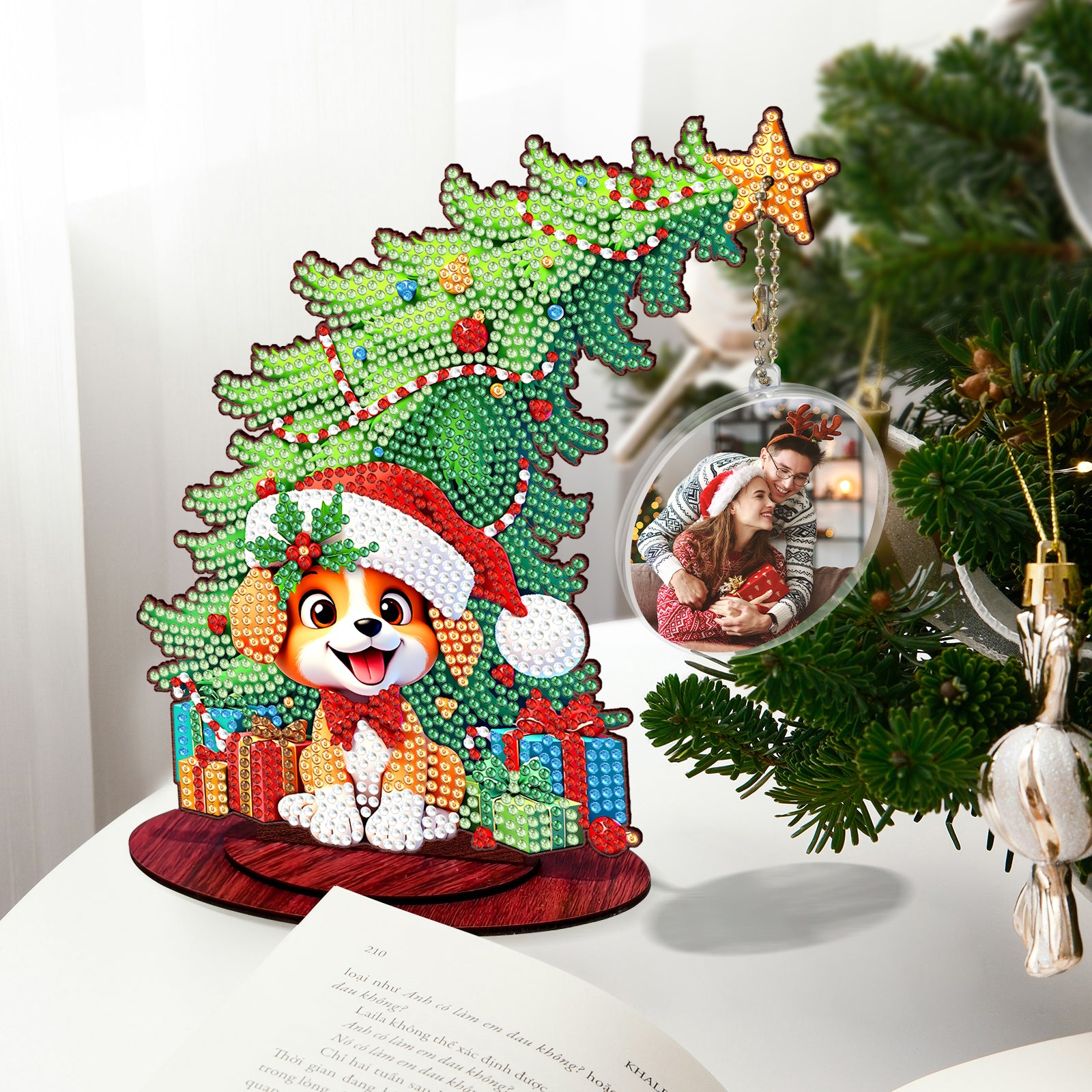 Dog Photo Xmas Tree 5D DIY Diamond Art Tabletop Wood Decoration Ornament Kit