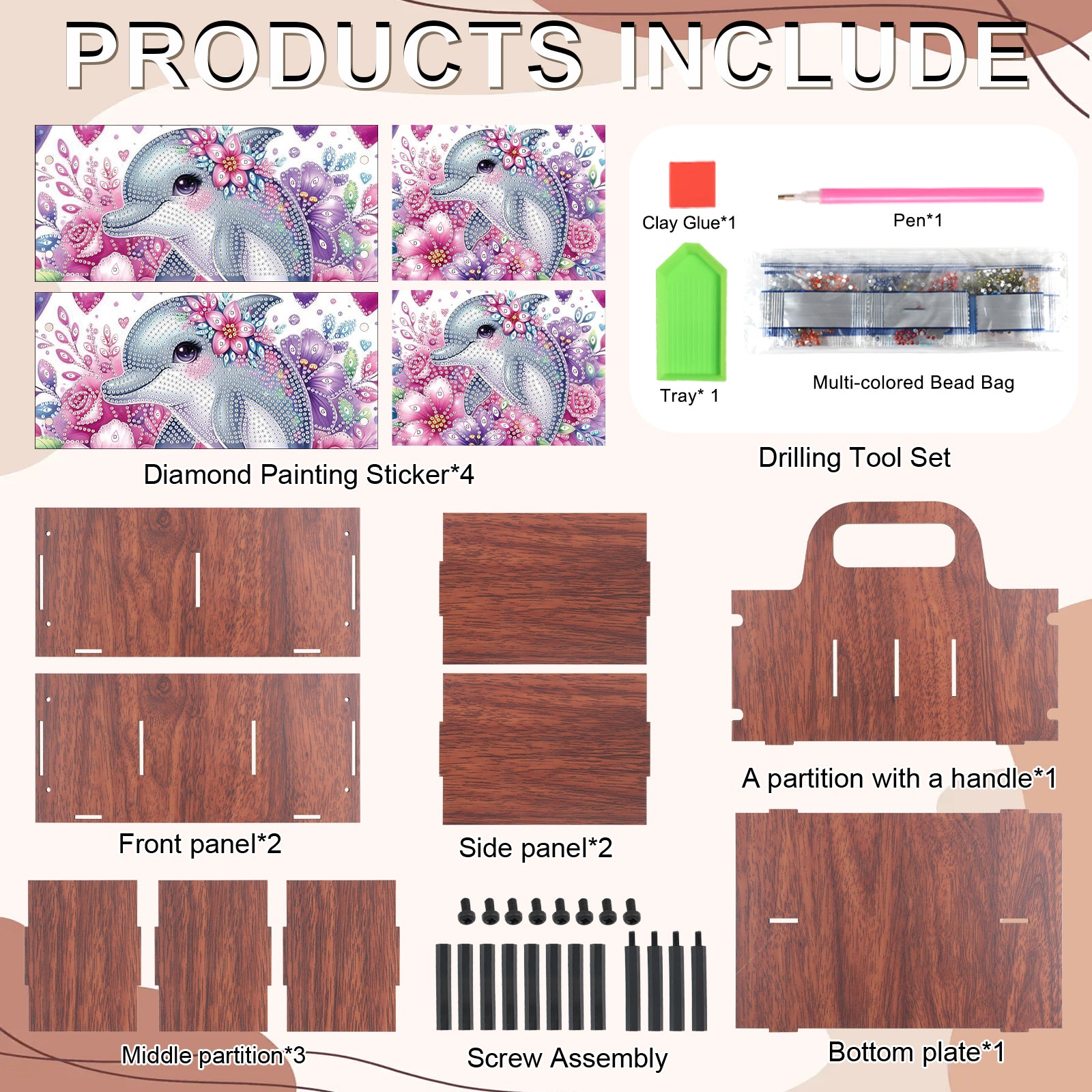 Dolphin DIY Wooden Diamond Art Painting Storage Box with Handheld Home Decor