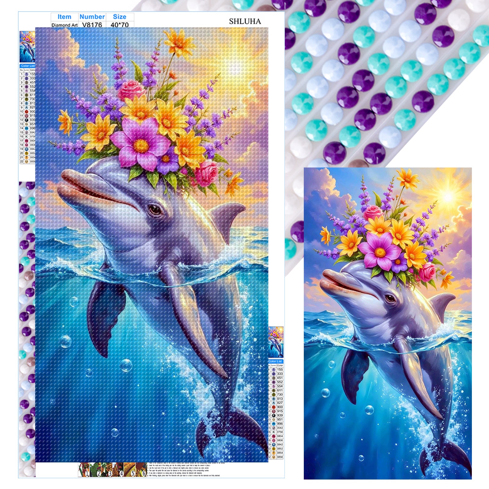 Dolphins And Flowers - Full Round Drill Diamond Painting 40*70CM